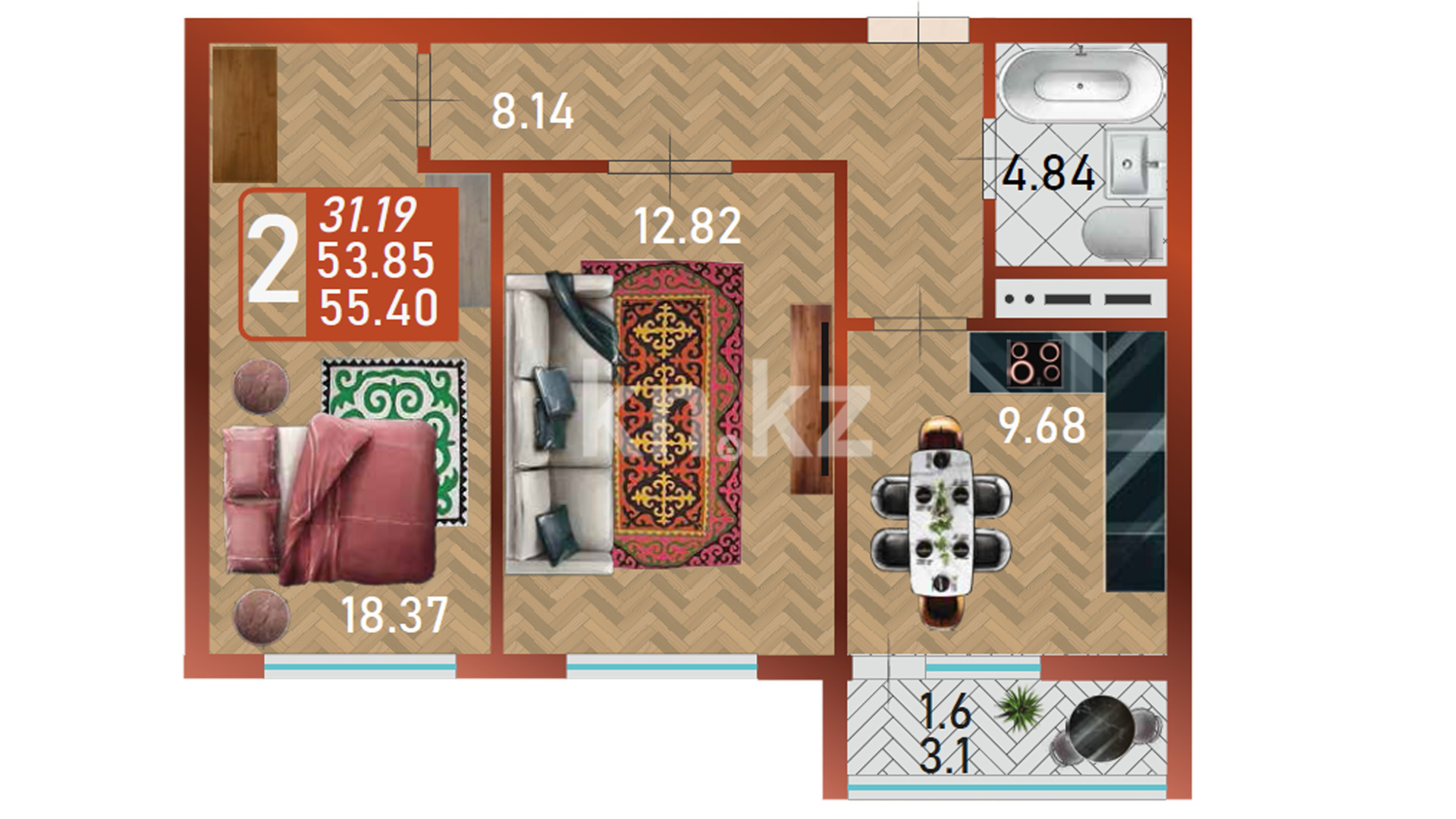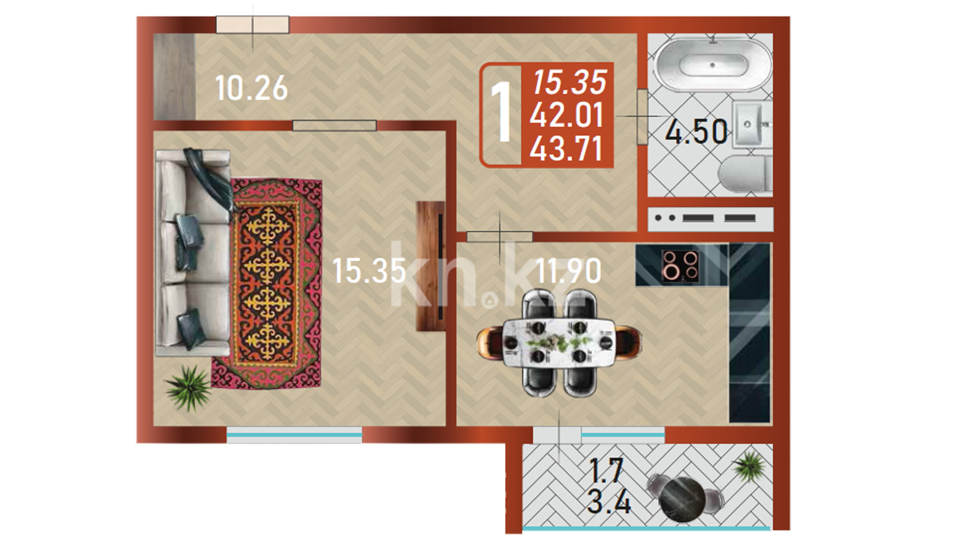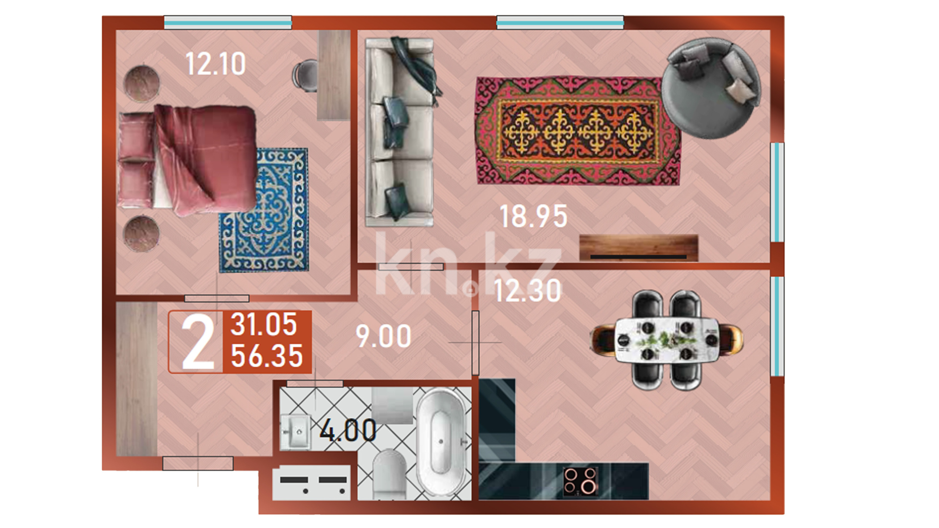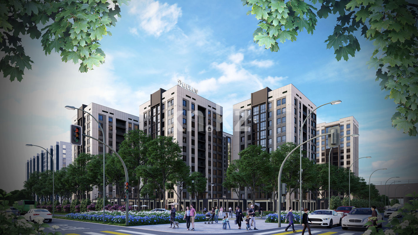 Его дома монолитные, 14 этажей, с черновой (базовой) отделкой, высота потолков — 3 метра. В квартирах предусмотрены большие окна (примерно 2,1 м), что делает помещения светлыми и просторными. Архитектурная концепция комплекса сочетает современные решения с национальным характером — фасады выстроены в актуальном стиле, а холлы оформлены с этно-элементами, придающими пространству особую атмосферу и уют.