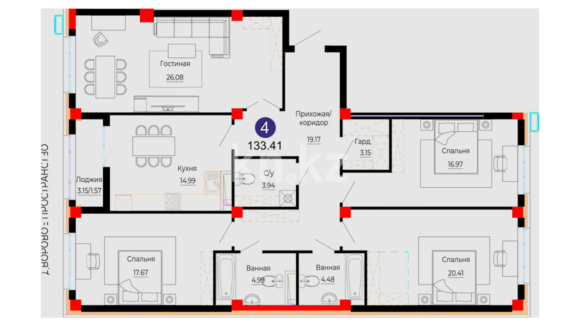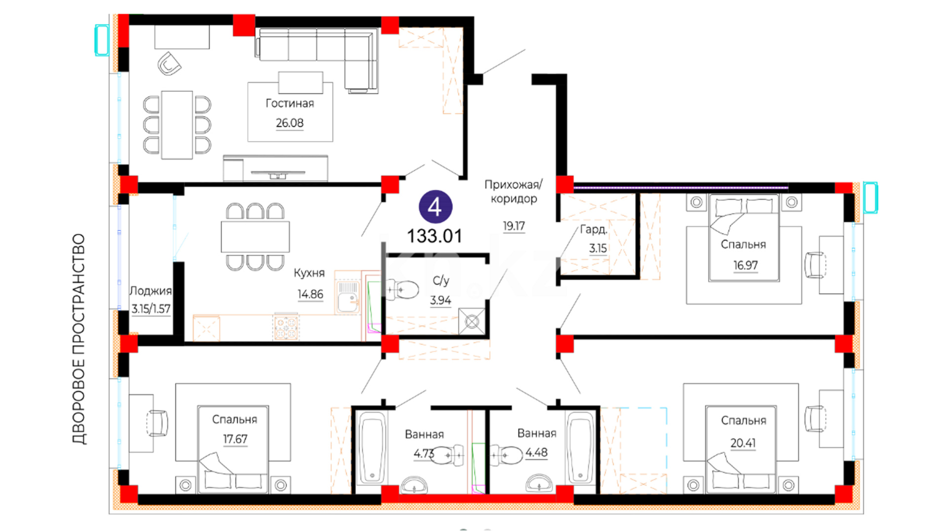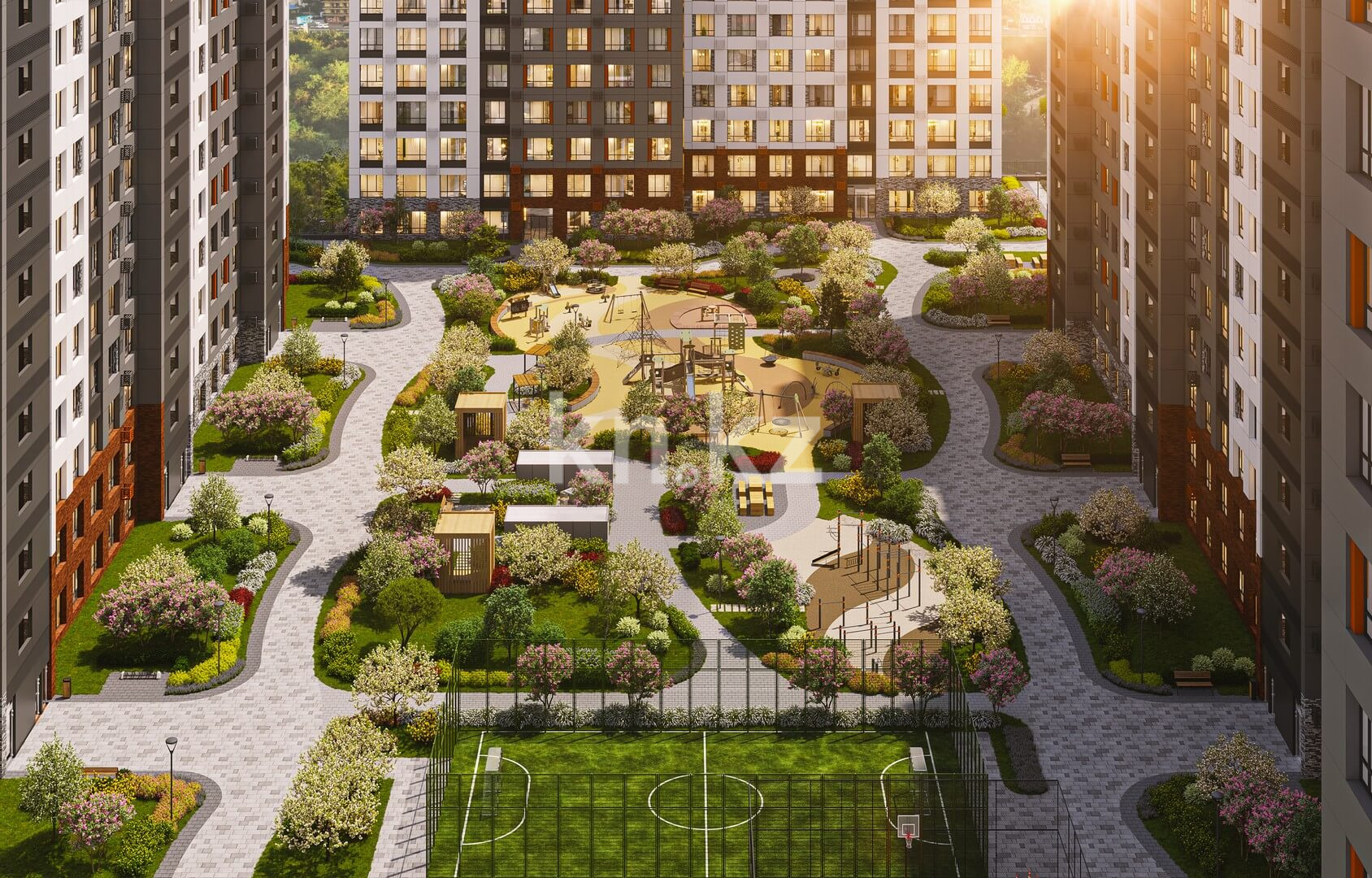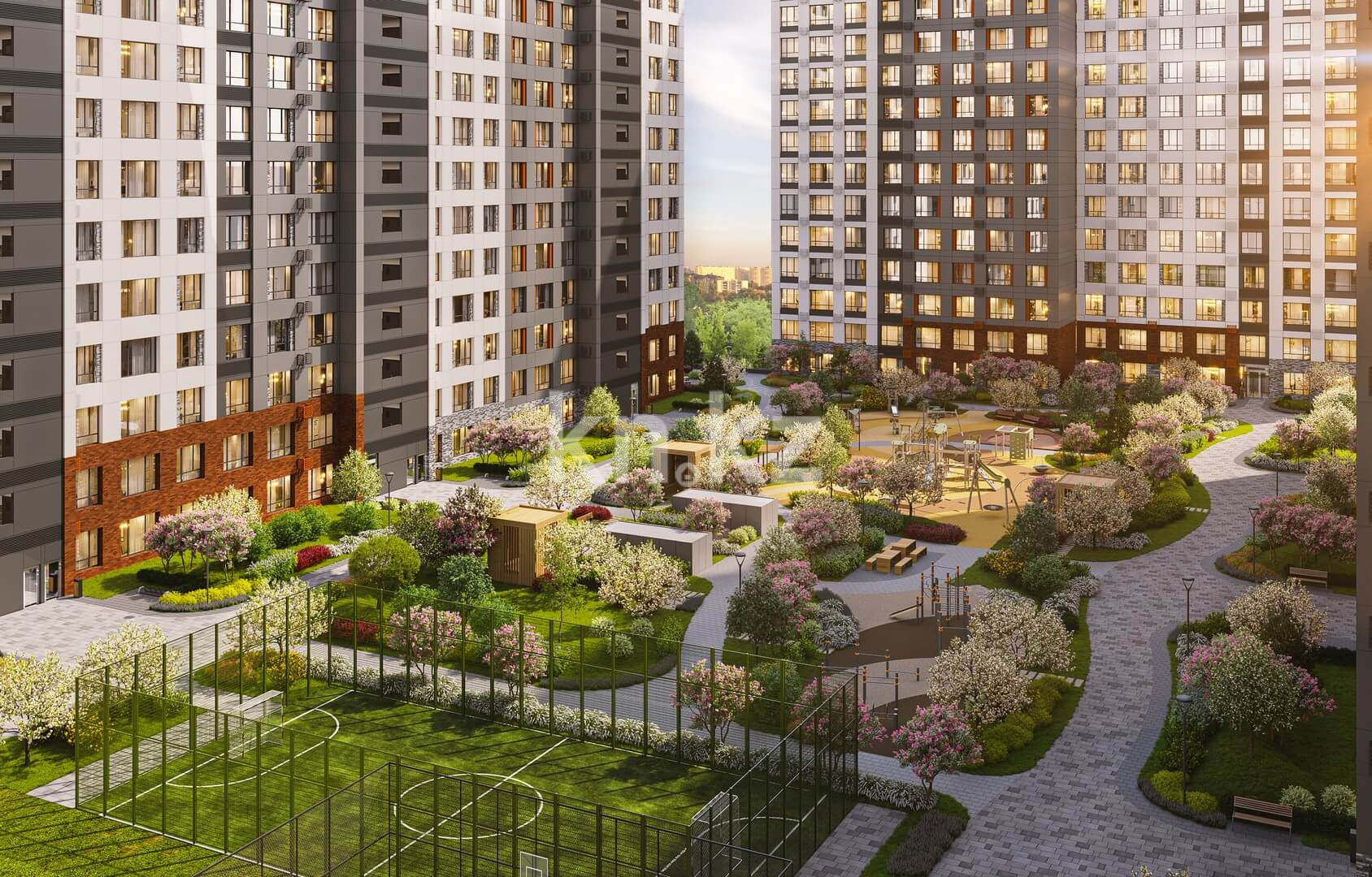 Общественные пространства комплекса выполнены с особым вниманием к деталям. Дизайнерский холл с мягкой зоной ожидания создаёт ощущение уюта и статуса с первых шагов. Бесшумные лифты, электронные замки и система безопасного доступа по Face ID обеспечивают комфорт и высокий уровень безопасности. Для активного образа жизни предусмотрена workout-зона на территории комплекса.