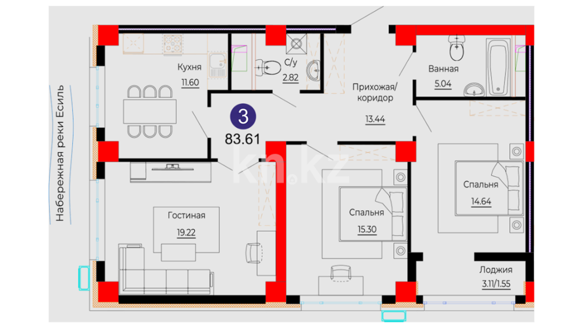 Набережная становится естественным продолжением повседневных маршрутов — местом для прогулок, отдыха и перезагрузки. Квартиры представлены в диапазоне площадей от 40,56 до 133,41 кв. м, что позволяет выбрать оптимальное решение как для индивидуального проживания, так и для семьи. Увеличенные окна наполняют помещения светом и подчёркивают современный характер интерьеров.