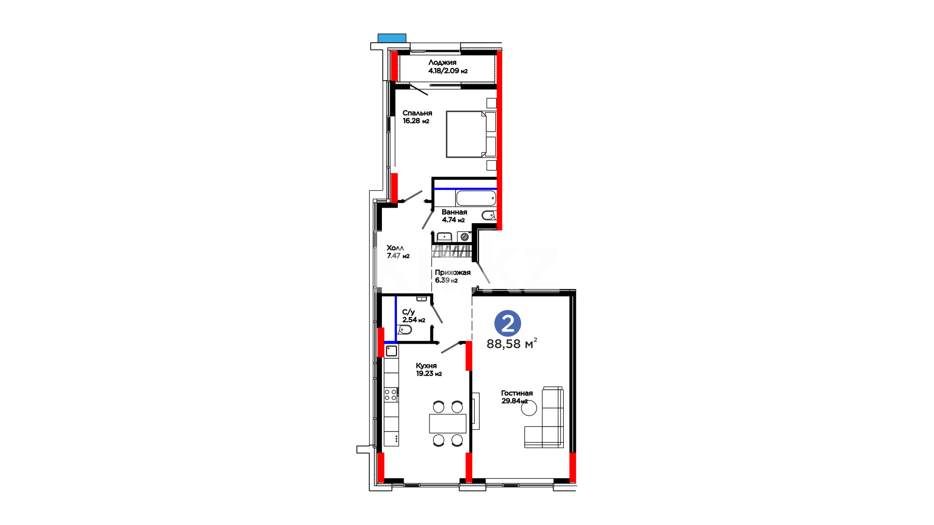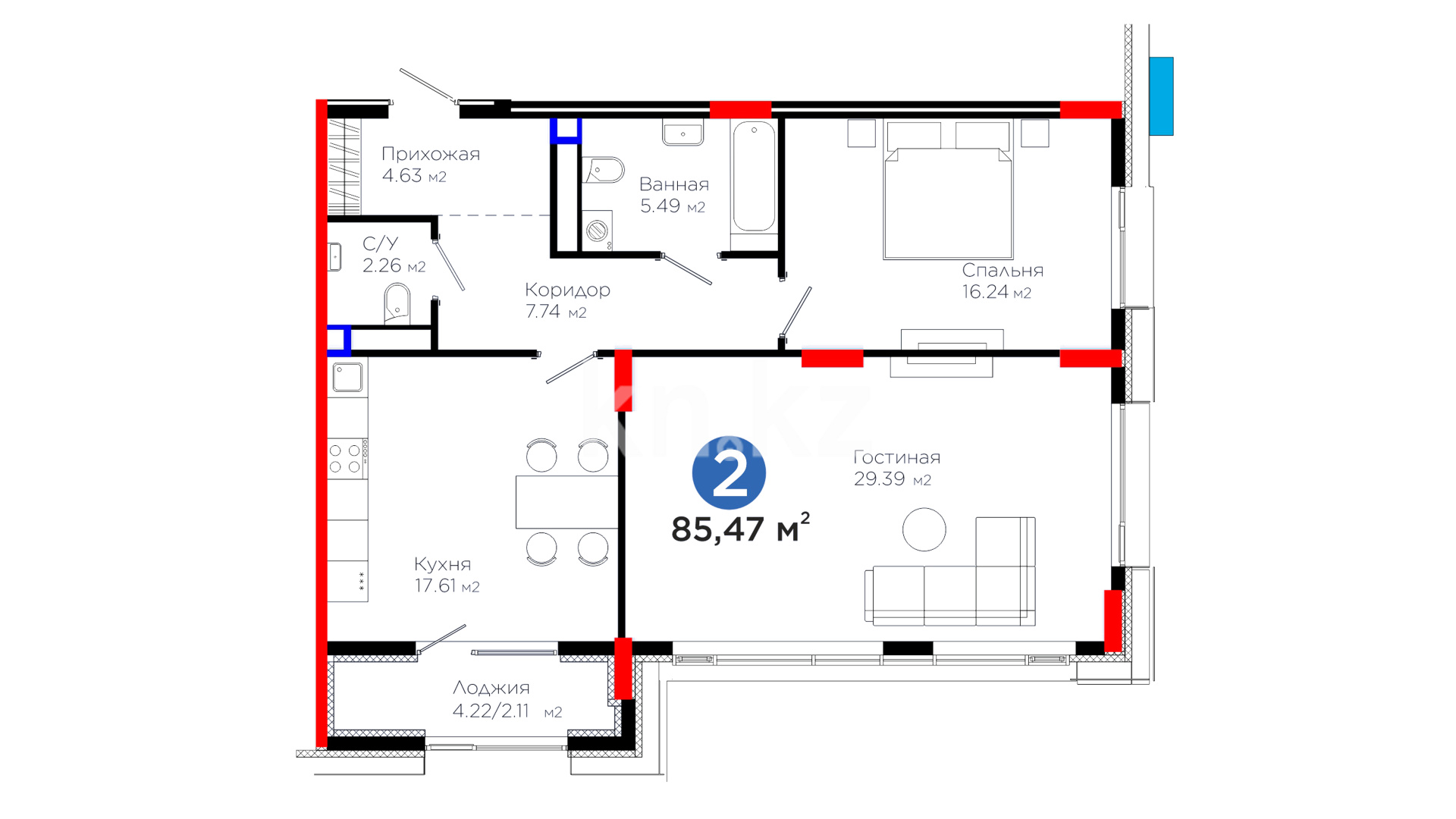• Каркас – монолитный железобетон обеспечивает прочность и сейсмоустойчивость.
