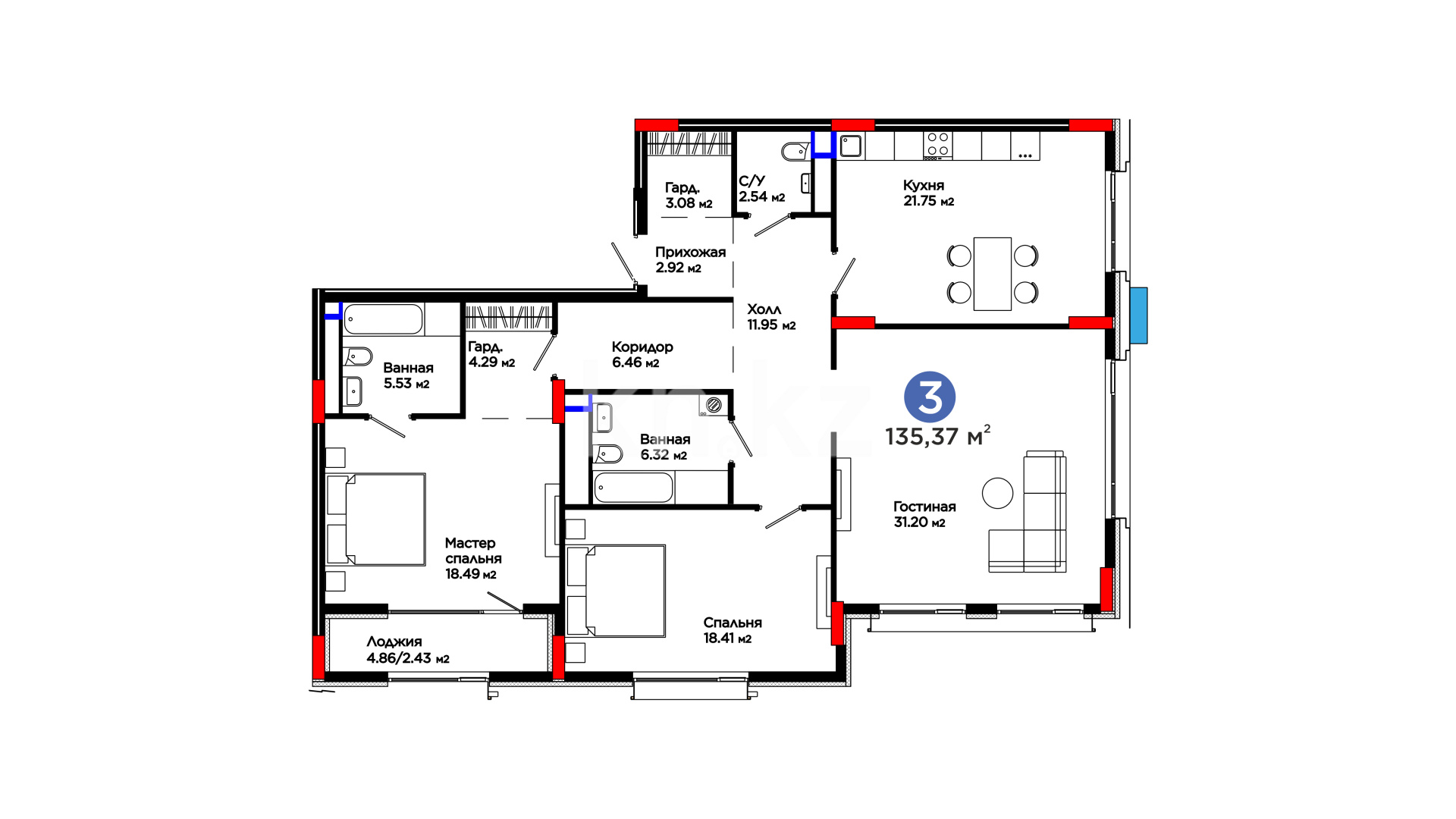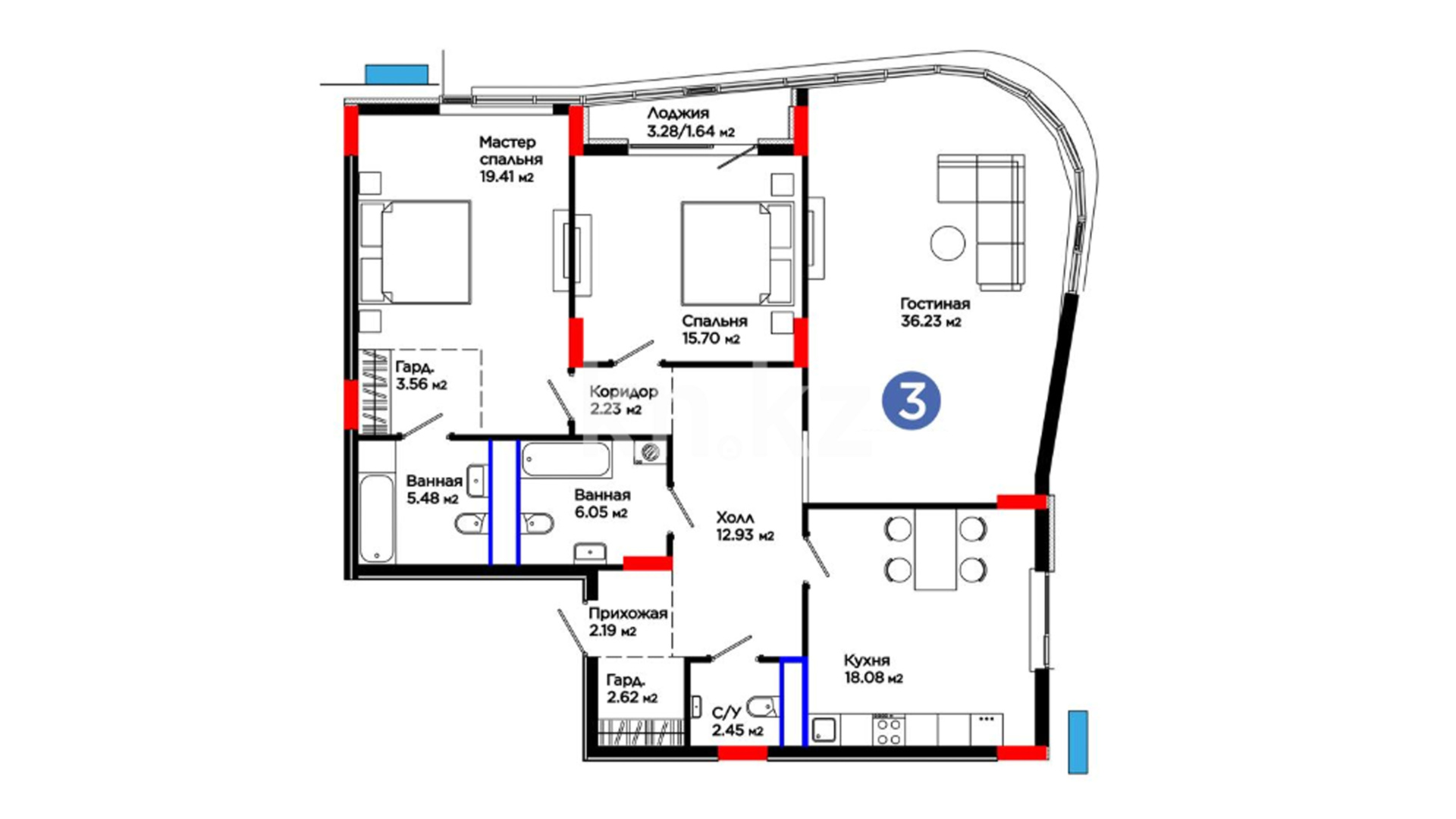 3-комнатная