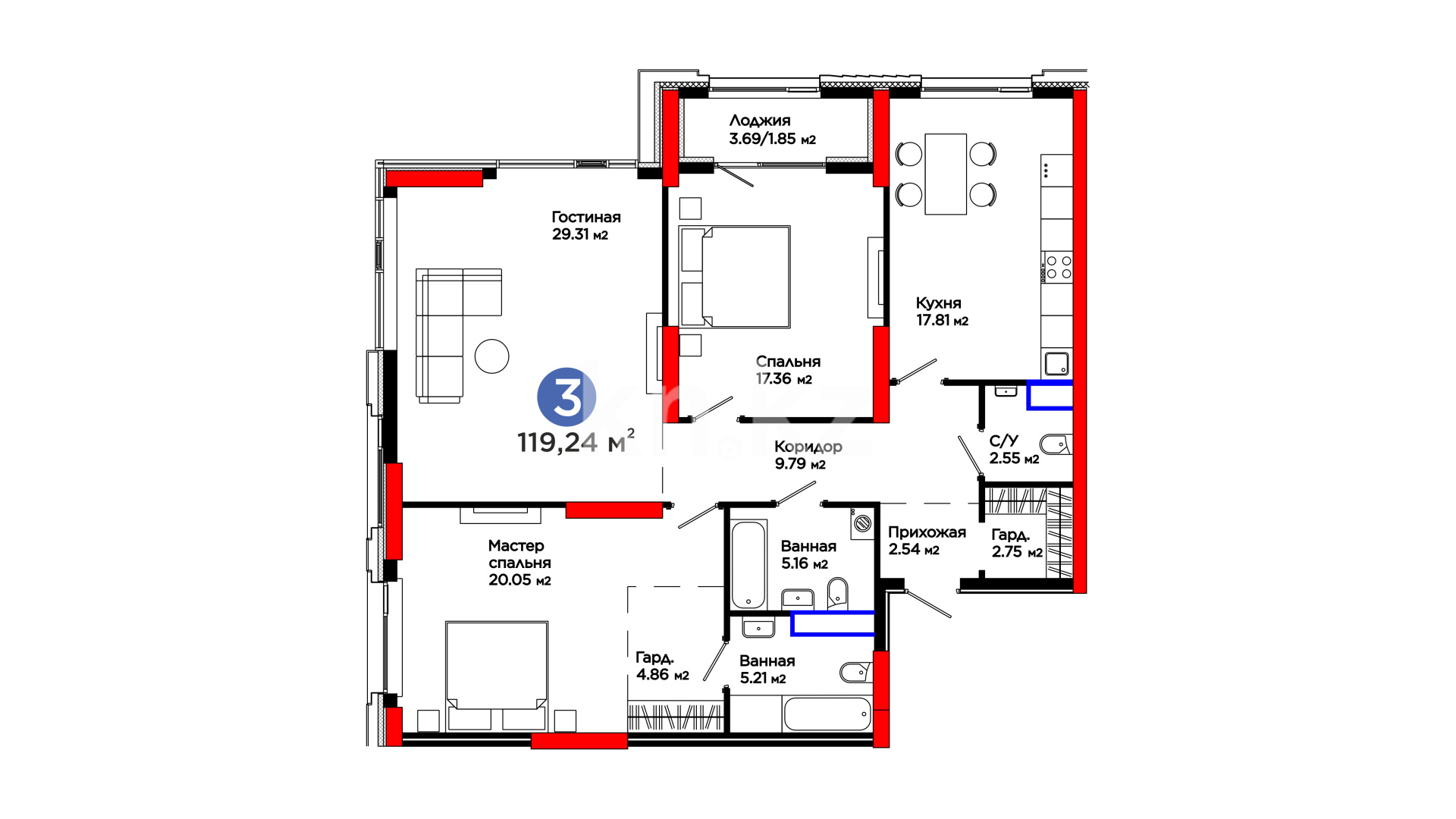 • Стены – межквартирные выполнены по технологии Acoustic Pro для максимальной шумоизоляции; межкомнатные – из газоблока, обеспечивающего тепло- и звукоизоляцию.