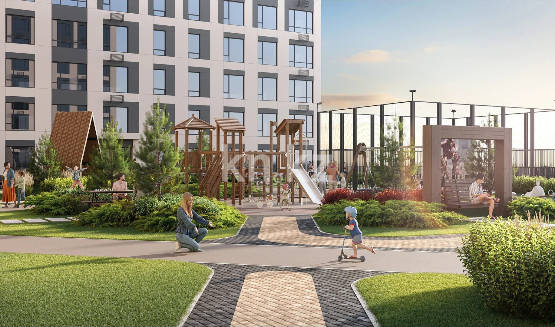 Инфраструктура комплекса ориентирована на комфорт и безопасность жителей. Внутренний двор — это приватная, полностью закрытая от машин территория, создающая оазис спокойствия с ландшафтным дизайном, тихими аллеями, уютными зонами для отдыха, современными детскими площадками, воркаут‑зонами и беговыми дорожками с тартановым покрытием. Установлены велопарковки, box-room и колясочные, а также круглосуточные видеонаблюдение и IP‑домофония, что усиливает безопасность и создаёт ощущение защищённости.