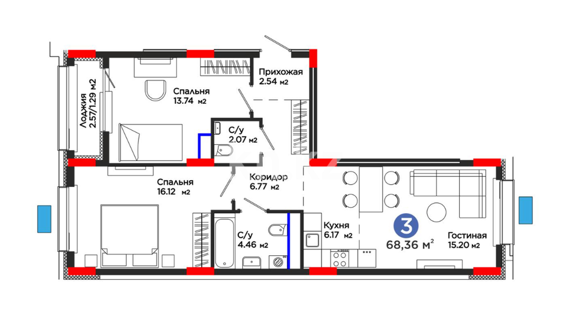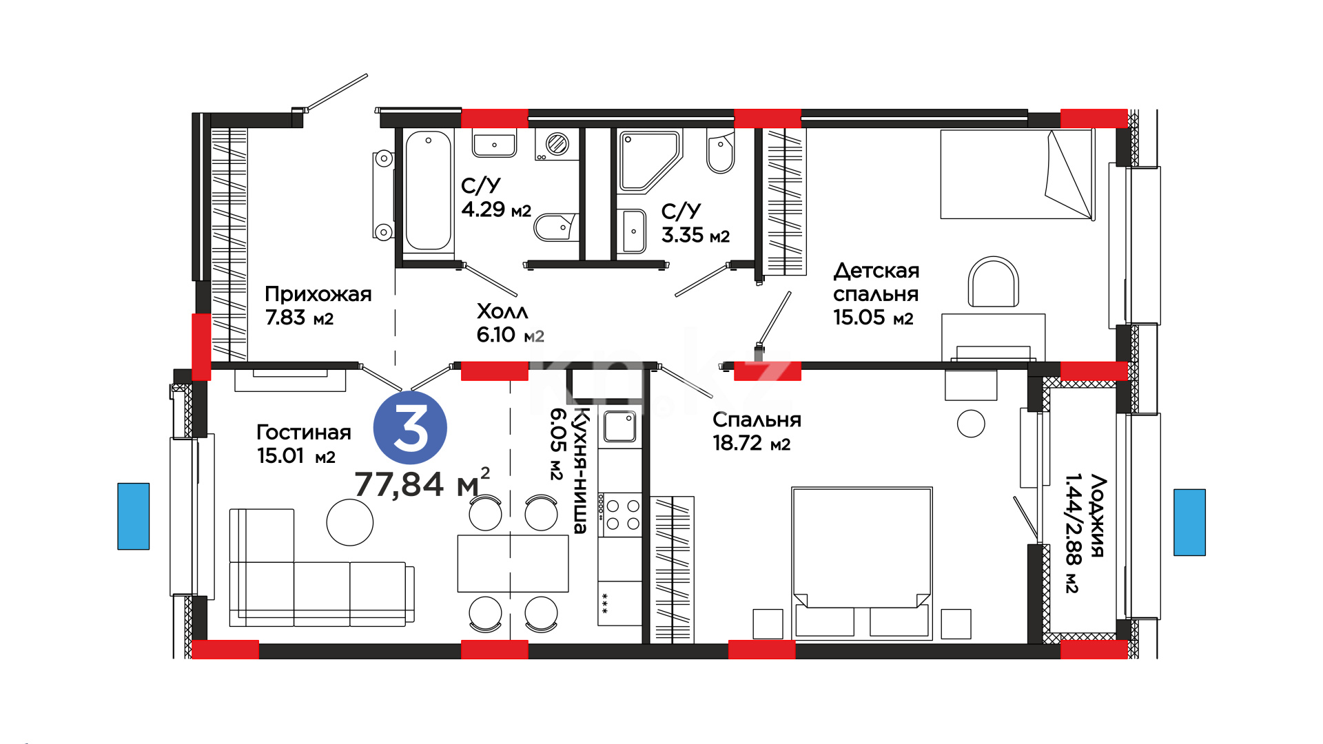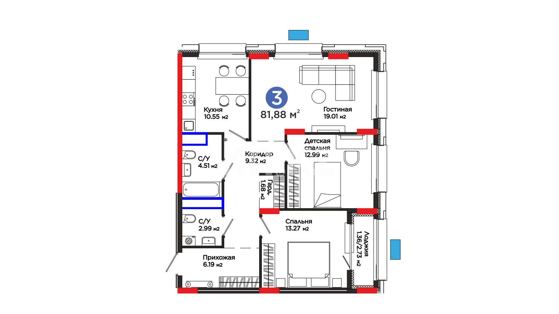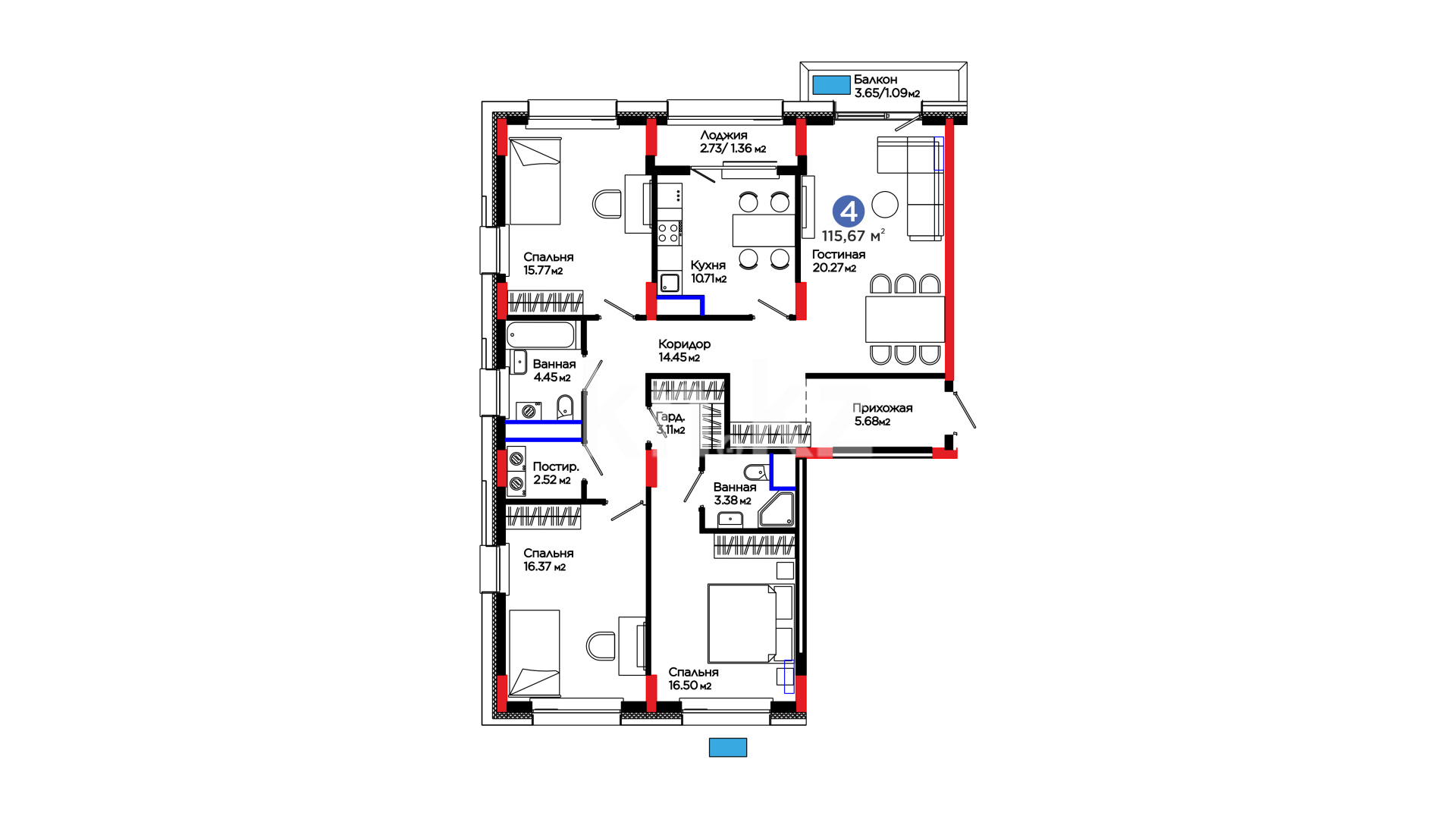 Комплекс возводится из монолитного железобетона, фасады отделаны алюминиевыми композитными панелями, а окна — металлопластиковые с тройным остеклением и пятикамерным профилем, что создает долговечную и энергоэффективную оболочку здания. Высота потолков — внушительные три метра, окна поднимаются от 2,2 до 2,7 метра, благодаря чему помещение наполняется светом и ощущением воздушности, а система шумоизоляции Acoustic Pro и «плавающий пол» помогают сохранить тишину и уют внутри квартир.