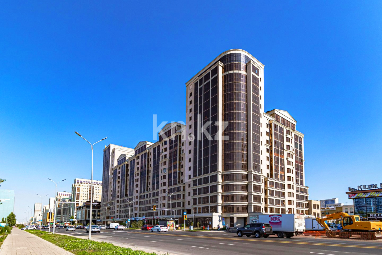 ЖК Астаны «Олимп Палас-2» представляет собой комплекс переменной этажности (13 и 17 этажей) на 14 секций, построенный из газоблока по монолитно-каркасной технологии. Фасады утеплены минераловатной плитой и выполнены в стиле модерн и неоклассицизма — они отделаны керамогранитом, металлочерепицей, рваным камнем, а также установлены металлопластиковые и алюминиевые профили. В архитектуре присутствуют элементы декоративного искусства.