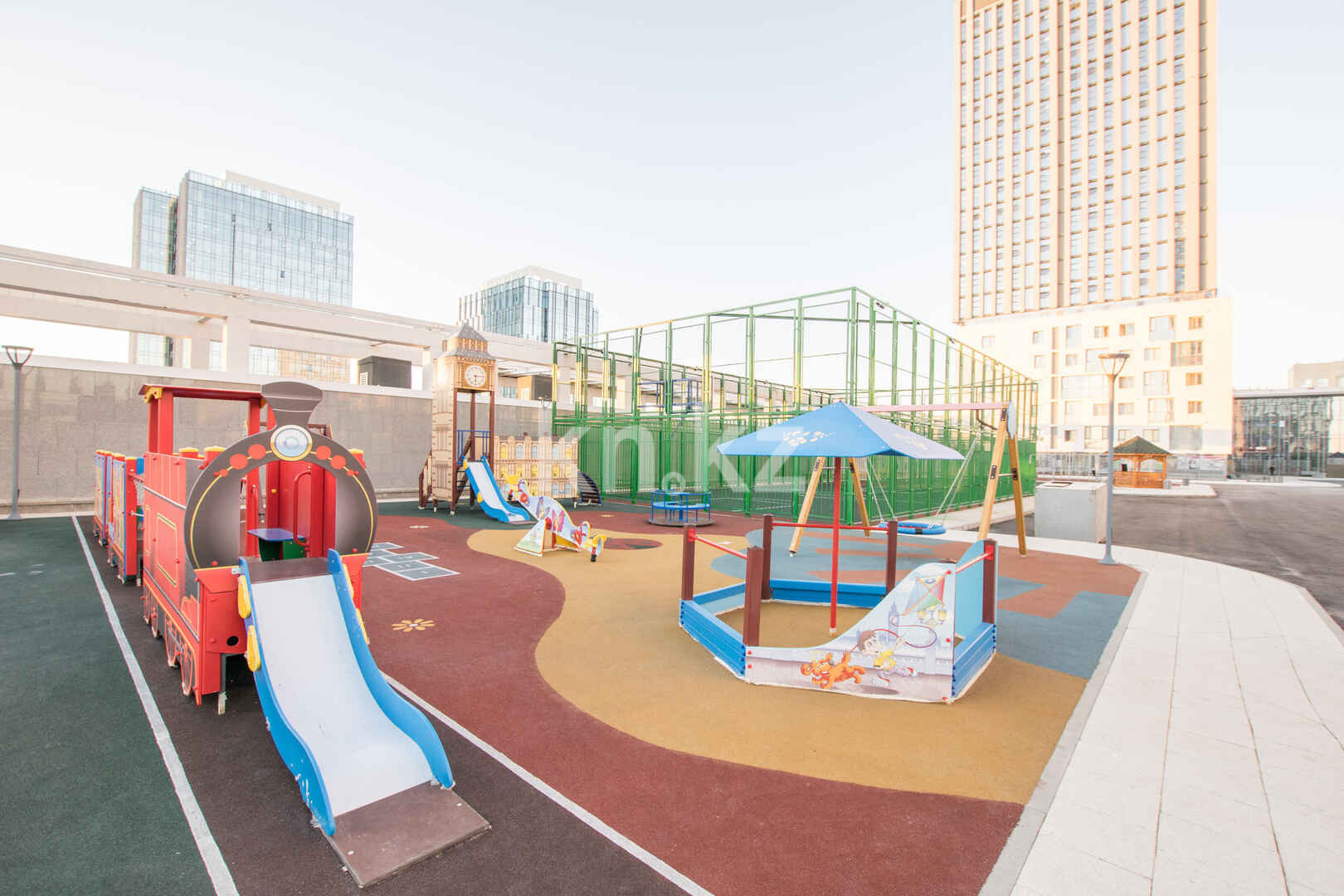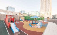 Инфраструктура района весьма развита - это и непосредственная близость детсада, школы, ледового дворца "Алау", а так же наличие большого количества промышленных и продуктовых магазинов, торговых центров, супермаркетов. Напротив комплекса так же расположилась площадка выставки Expo-2017.
