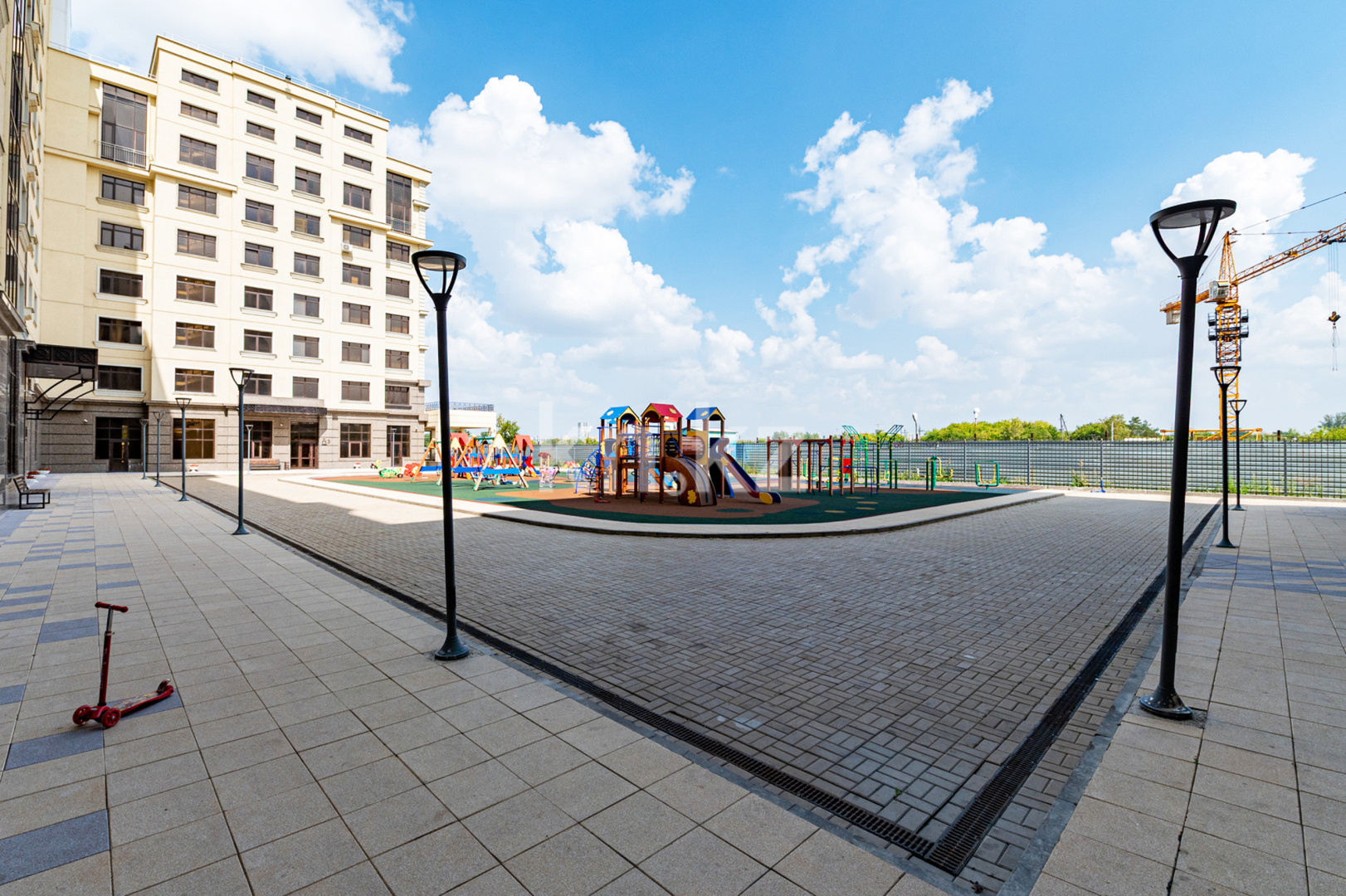 Во дворе построены игровые зоны, спортивные уголки и зоны отдыха.