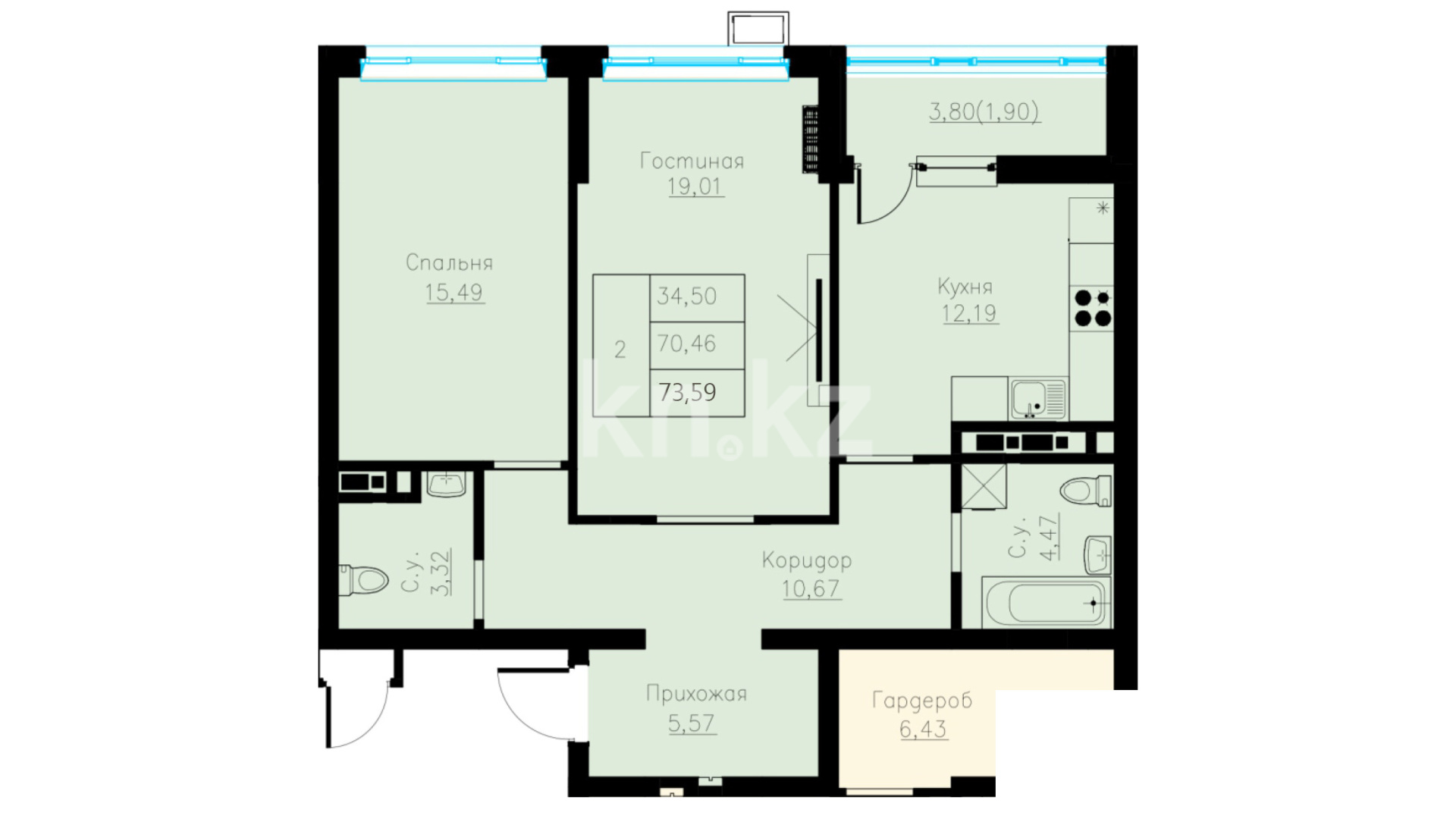 В комплексе представлены 1-, 2-, 3- и 4-комнатные квартиры площадью от 39 до 122 кв. метров. На первом этаже расположены встроенные помещения.