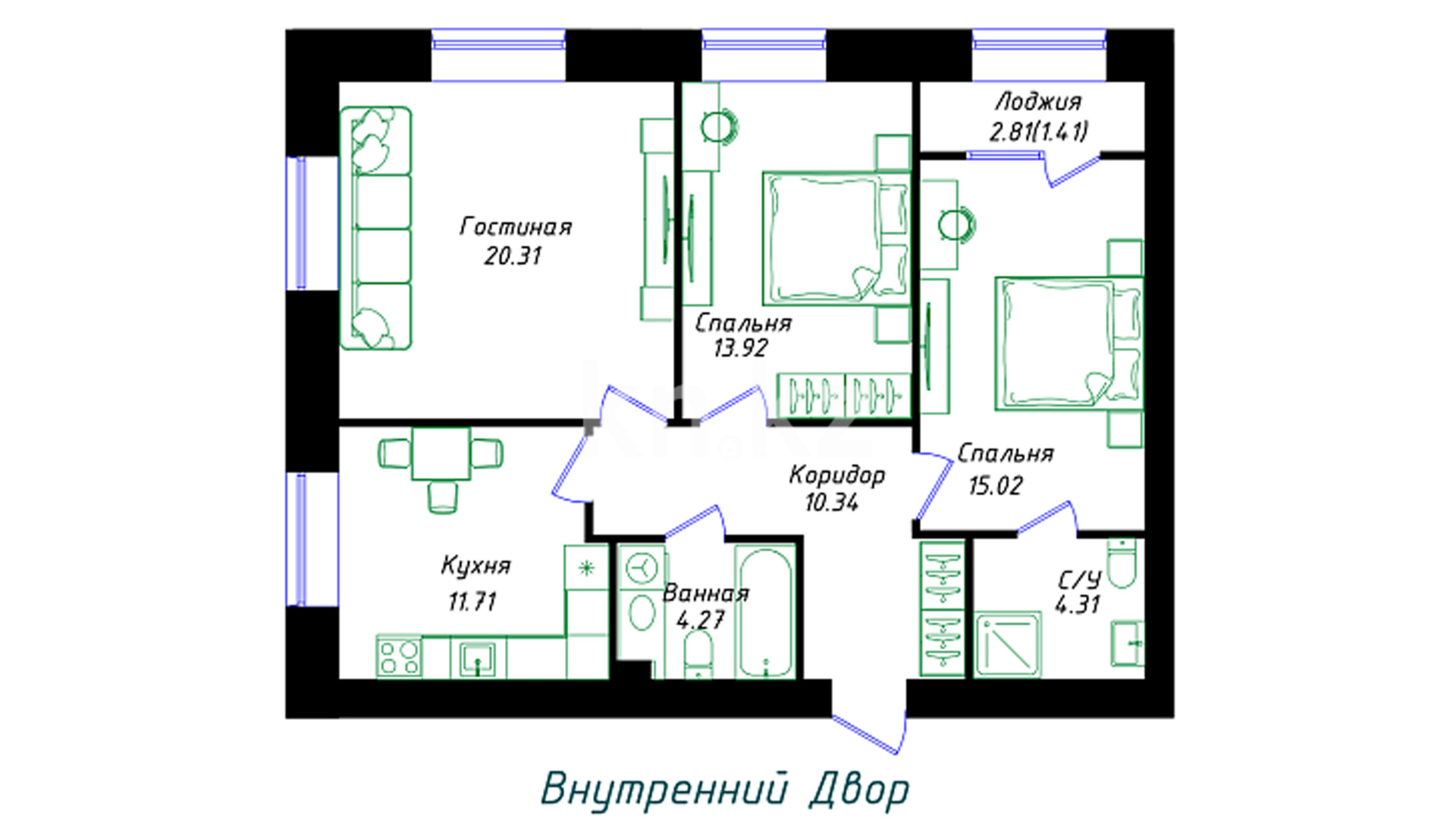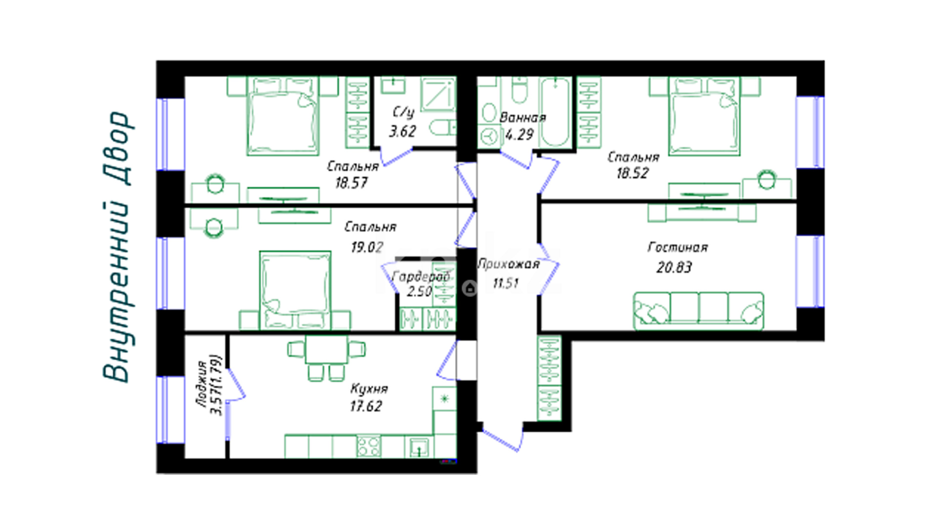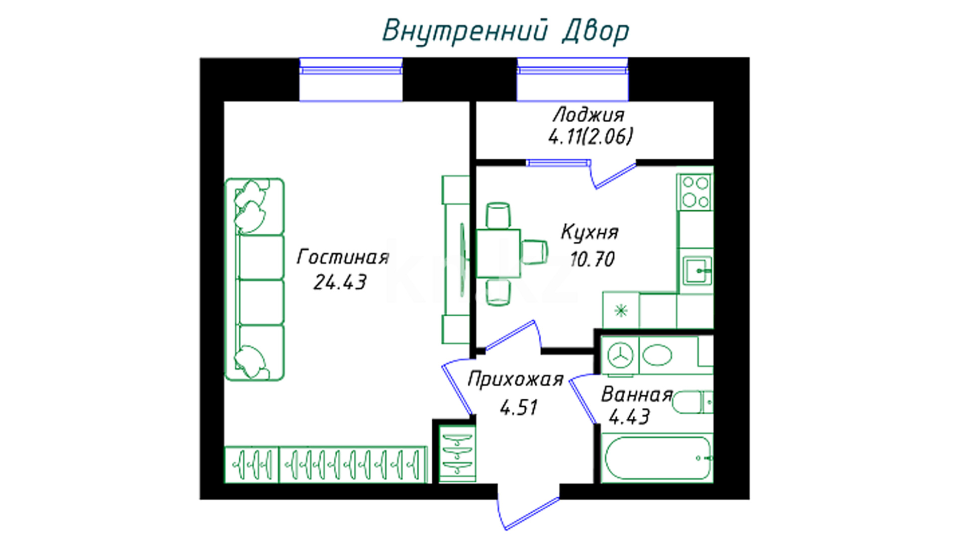Двор, расположенный на уровне второго этажа, спроектирован как уютное и безопасное пространство для жизни. Здесь предусмотрены зоны отдыха для взрослых, современная детская площадка и спортивная зона — всё для комфорта и гармонии жителей. Территория двора закрыта и надежно защищена.