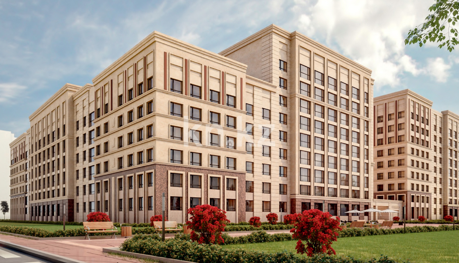ЖК Raiymbek - это полностью кирпичный дом, состоящий из 6-9 этажей. Фасады первого и второго этажа облицовываются гранитом, выше – травертином. В темное время суток предусмотрена ночная подсветка фасада.