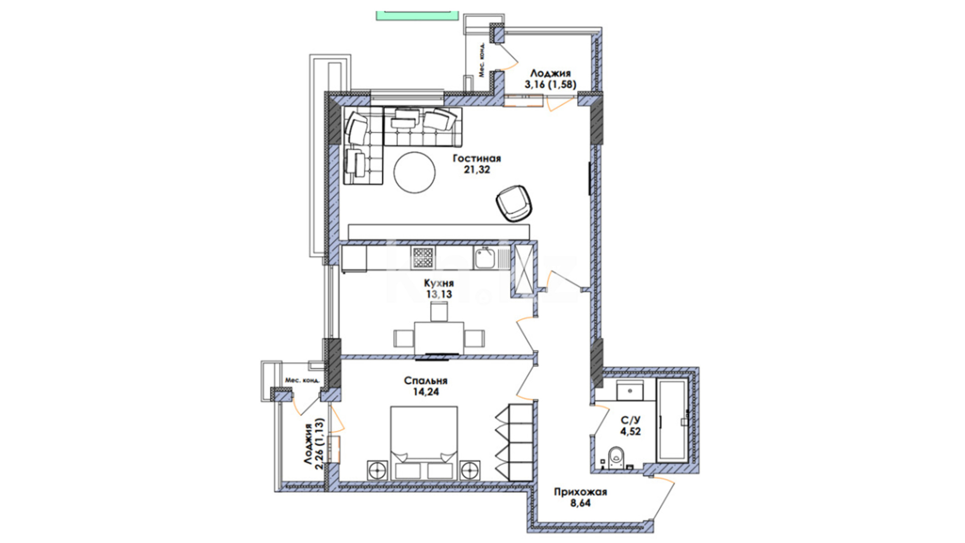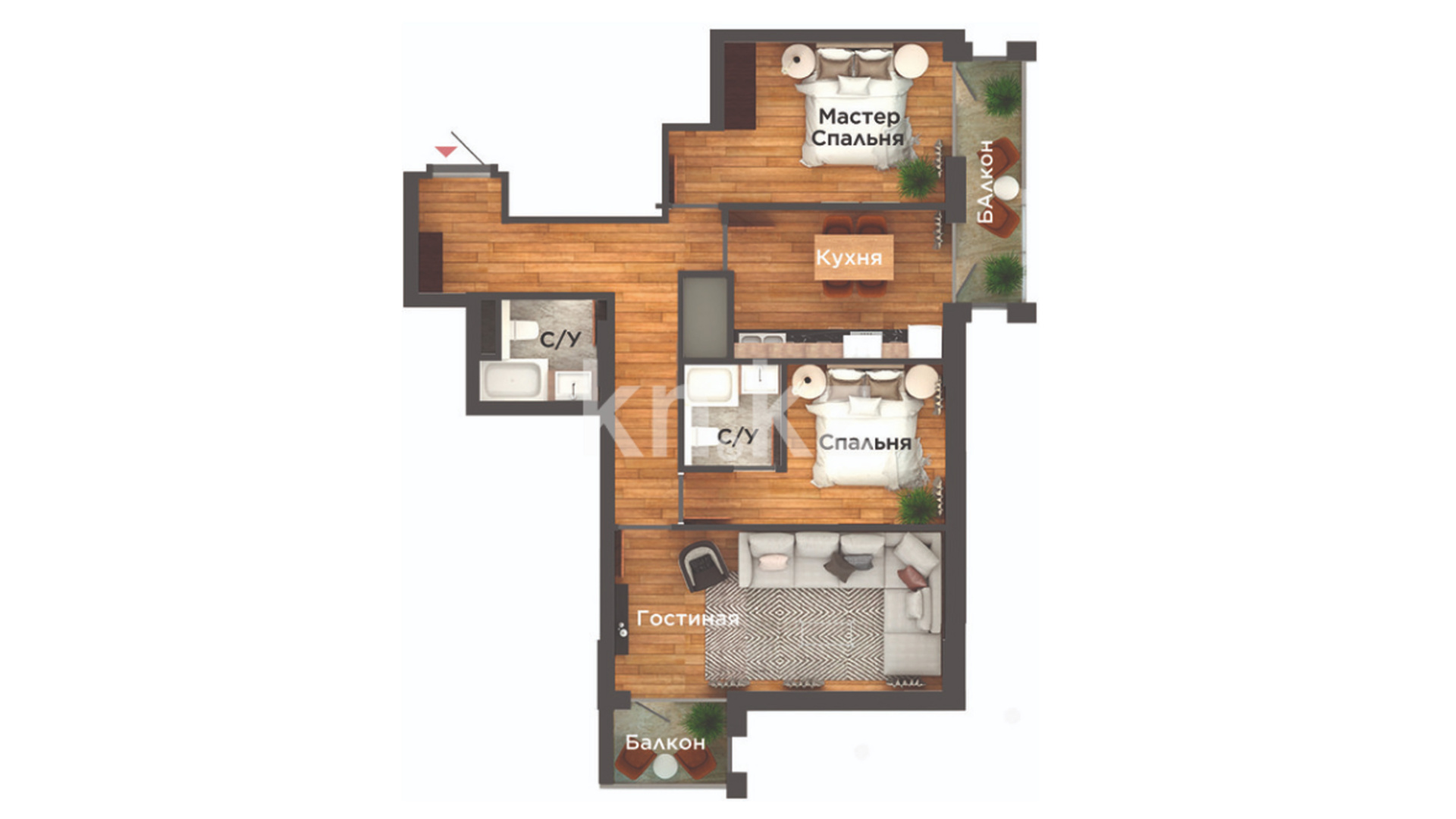 В комплексе представлены 1-, 2-, 3-комнатные квартиры и 4-, 5-комнатные пентхаусы. Витражные балконы во всех квартирах, в пентхаусах террасы с панорамным видом на столицу.