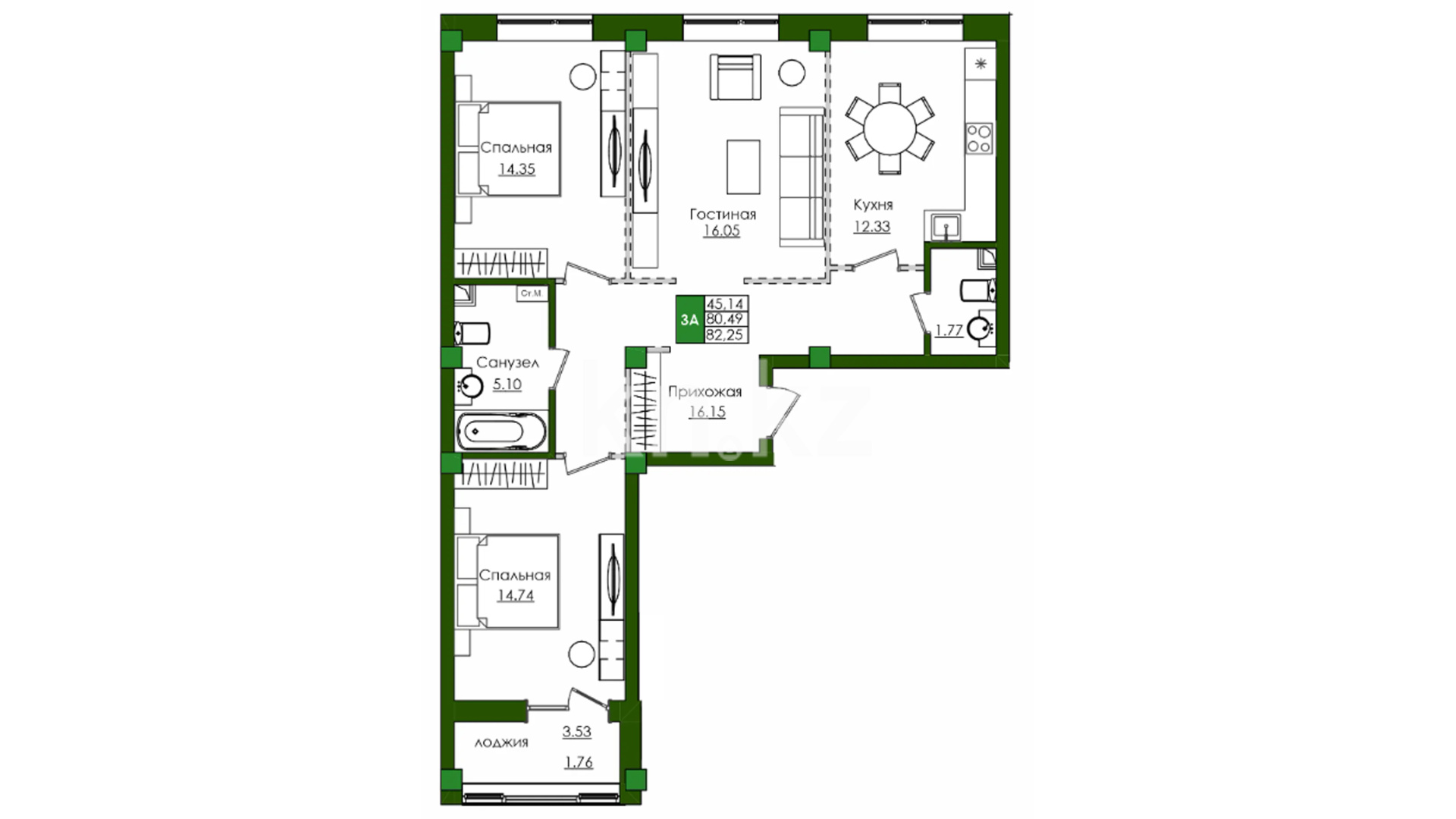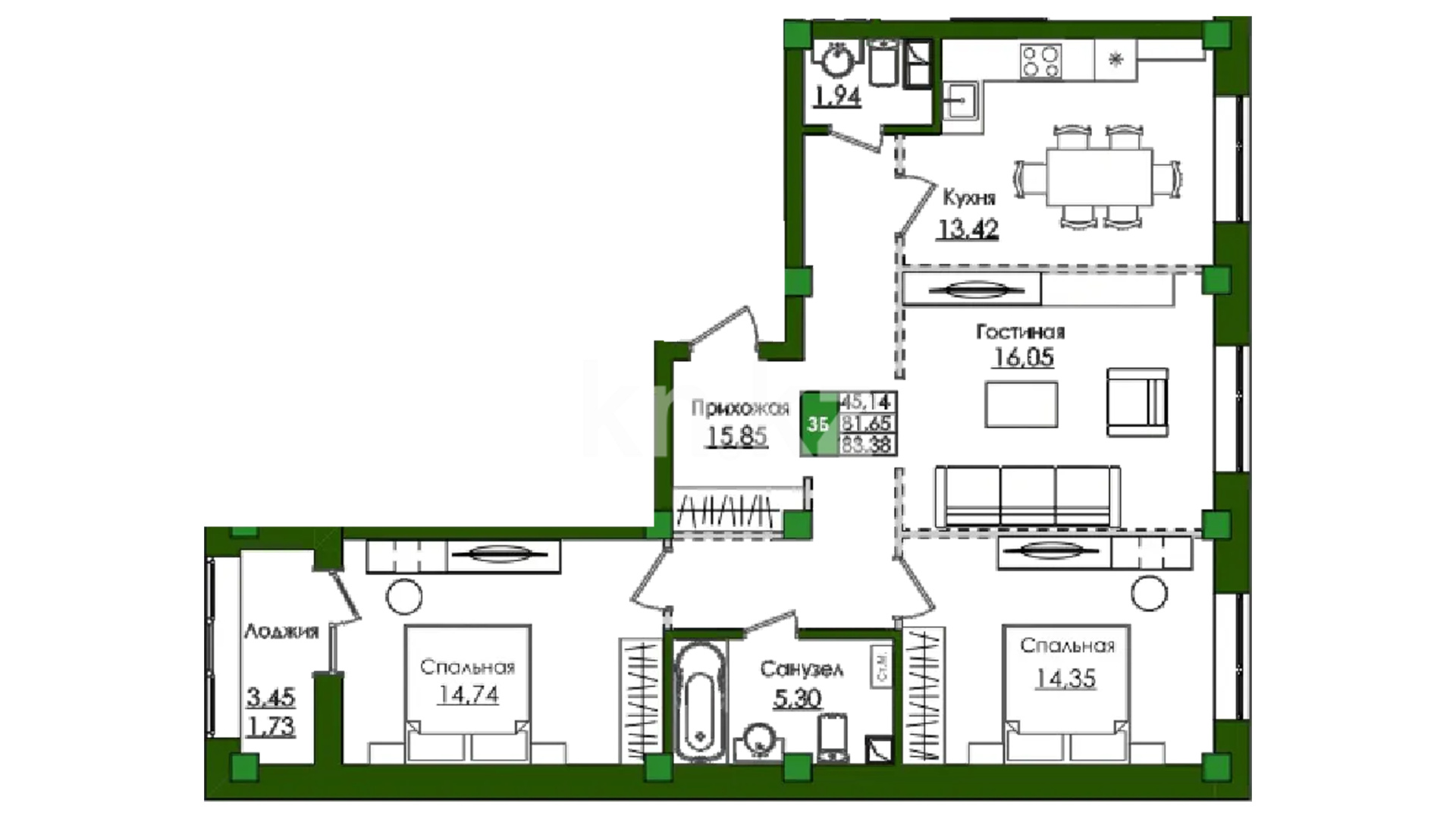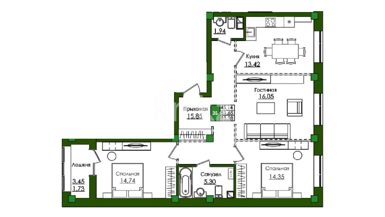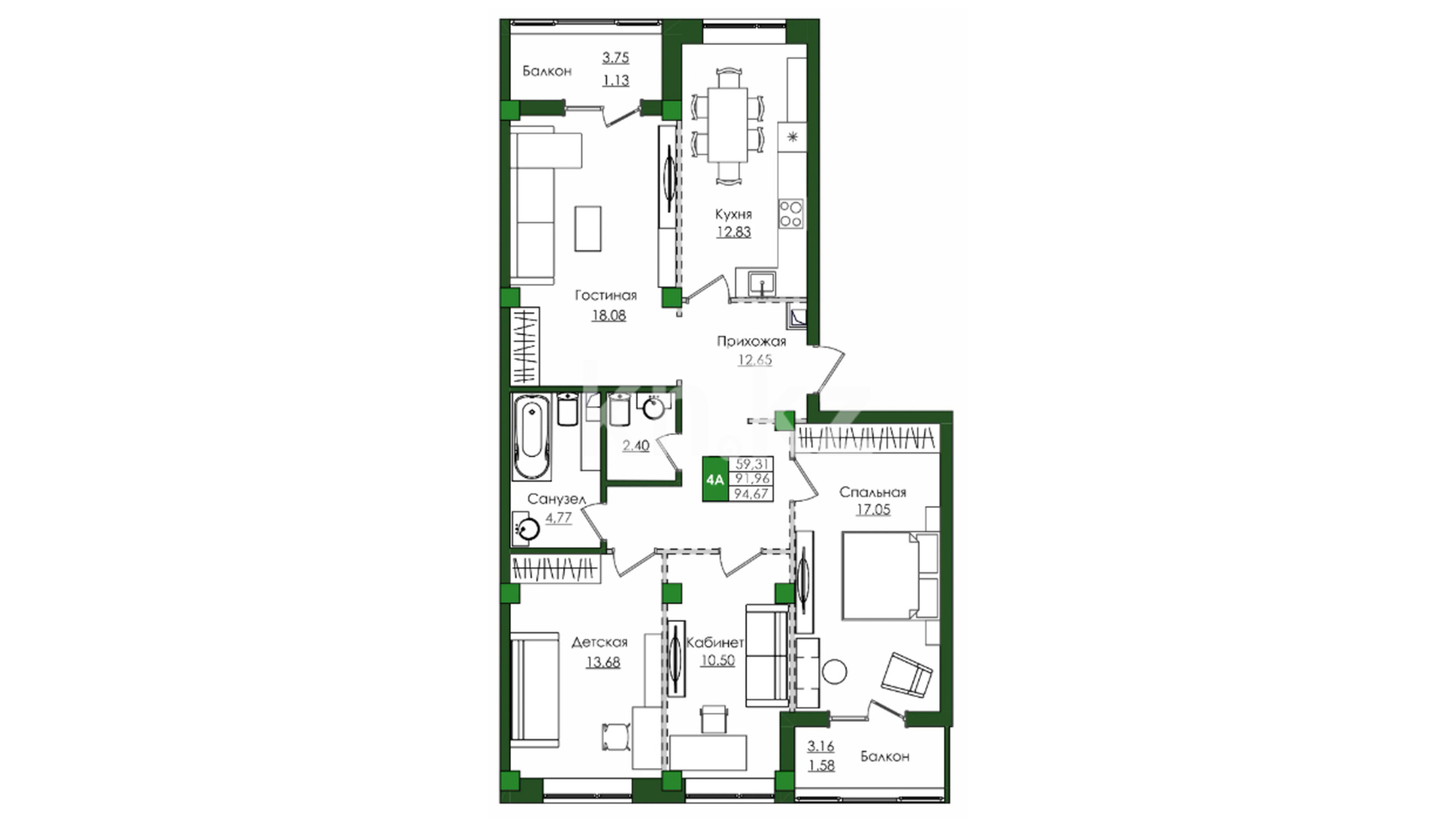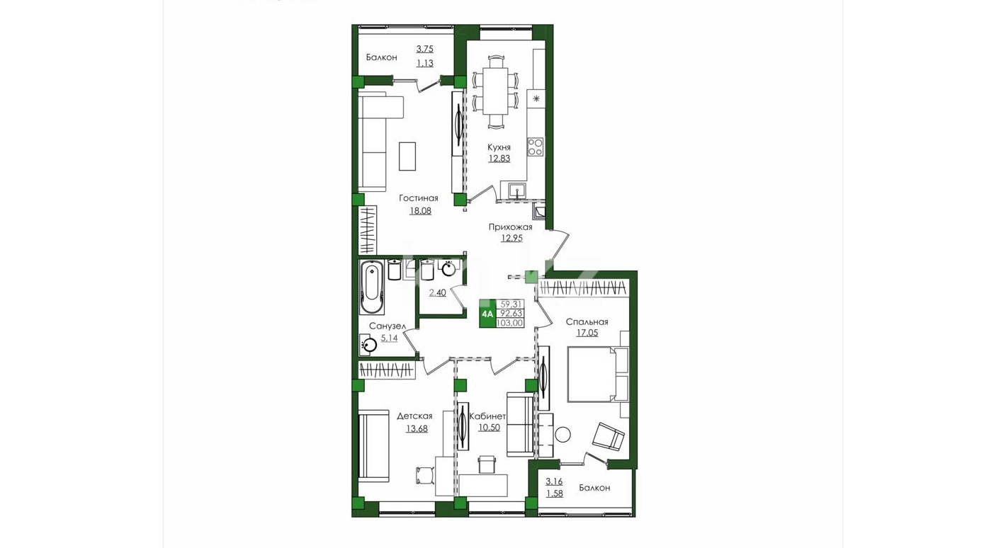 Увеличенные окна - высота окон 2,10 на 1,85 метров.