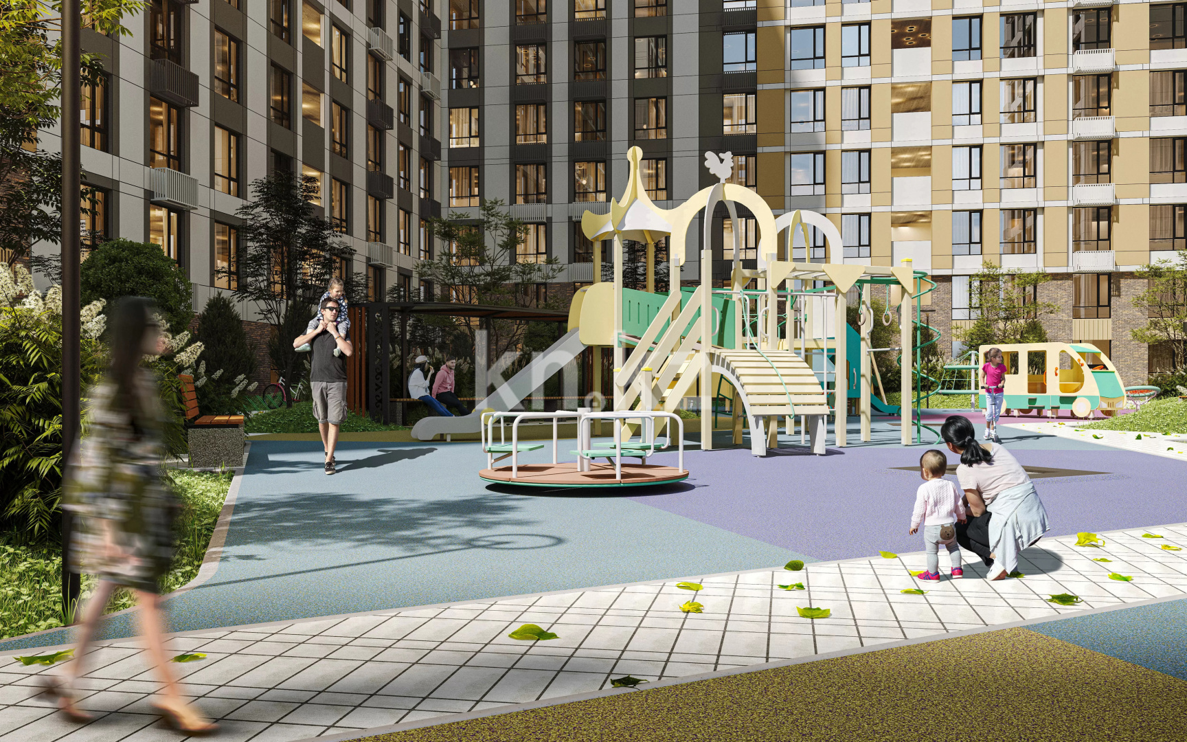 Территория жилого комплекса закрытая и полностью безопасная, что делает ее идеальной для семей с детьми.