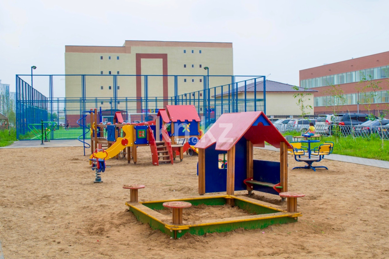 Территория жилого комплекса полностью благоустроена, оборудована детскими и спортивными площадками, скамейками и беседками, есть огороженное футбольное поле.