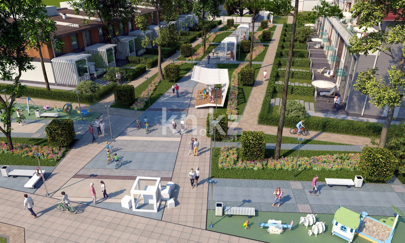 Территория комплекса благоустроена. Проложены проезды, тротуары и пешеходные дорожки, высажены травяные газоны, деревья и декоративные кустарники. Организованы хорошо оснащенные зоны отдыха и детские игровые площадки, установлены наружные осветительные приборы.