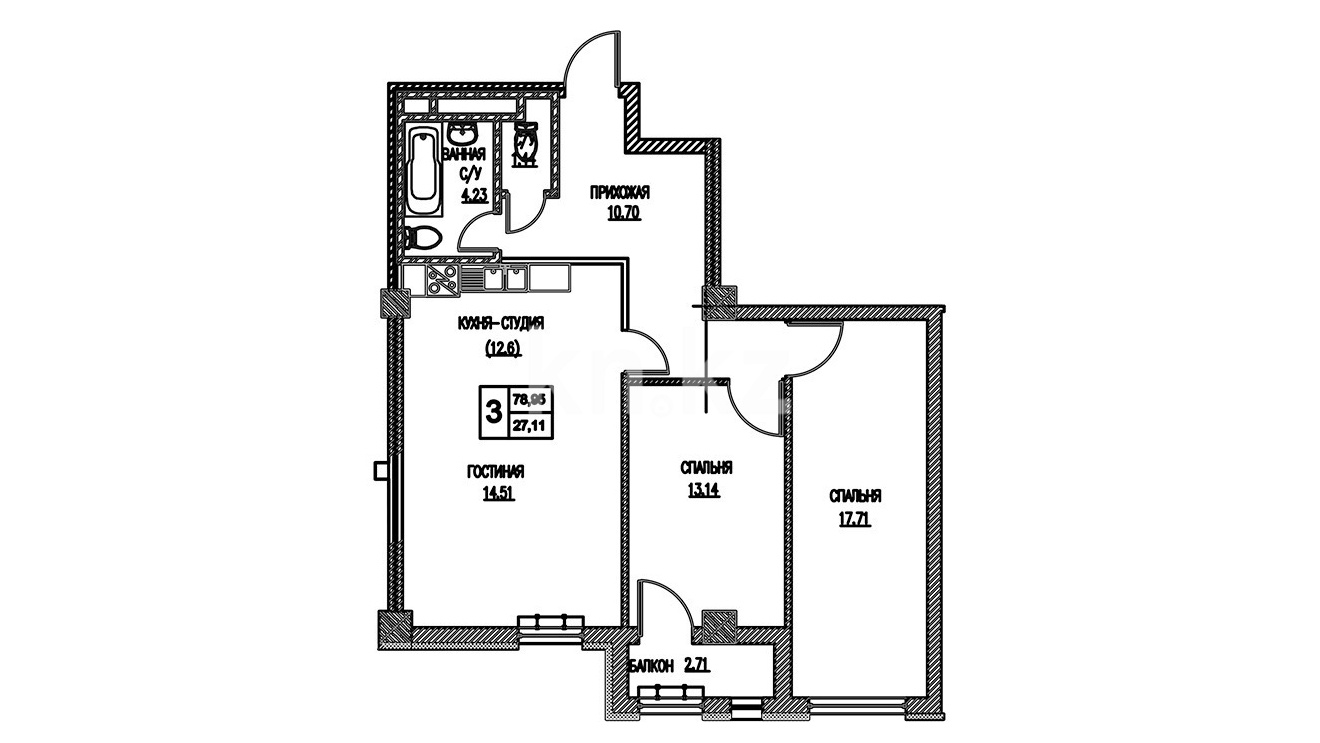 в трехкомнатных — по 2 балкона и 1 лоджия;