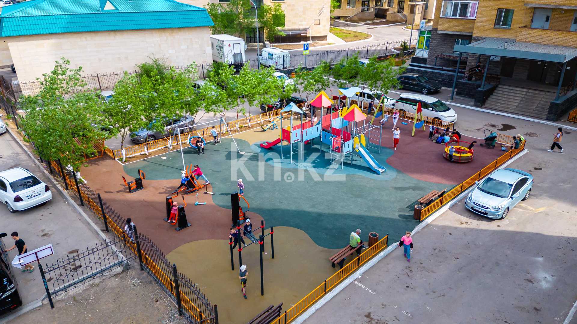 Придомовая территория благоустроена, обустроены детские и спортивные площадки, беседки и скамейки для отдыха местных жителей. Первые этажи башен отведены под размещение коммерческих помещений с отдельными входными группами.
