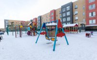 Двор закрыт для посторонних. Территория комплекса находится под круглосуточной охраной, установлены камеры видеонаблюдения.