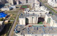 Фасады выполнены в "национальном" стиле, учитывая градостроительные и концептуальное решение данного района, с применением декоративных карнизов, решеток и казахских орнаментов.