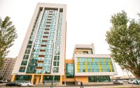 Комплекс состоит из 9- и 17-этажных зданий на углу двух улиц соединенных между собой 3 этажным бизнес центром. Автопаркинг спроектирован так, что въезды имеются с двух улиц. Заезжая или выезжая с ул. Туркестан или ул. Сыганак жители не будут испытывать проблем с движением в нужном направлении. Тем самым внутренняя дворовая зона будет безопасной для взрослых и детей. Ограниченный заезд со двора разрешен только для загрузки/выгрузки и в экстренных случаях. Паркинг полностью отвечает требованиям и нормам пожарной безопасности, что немаловажно при его эксплуатации в будущем.