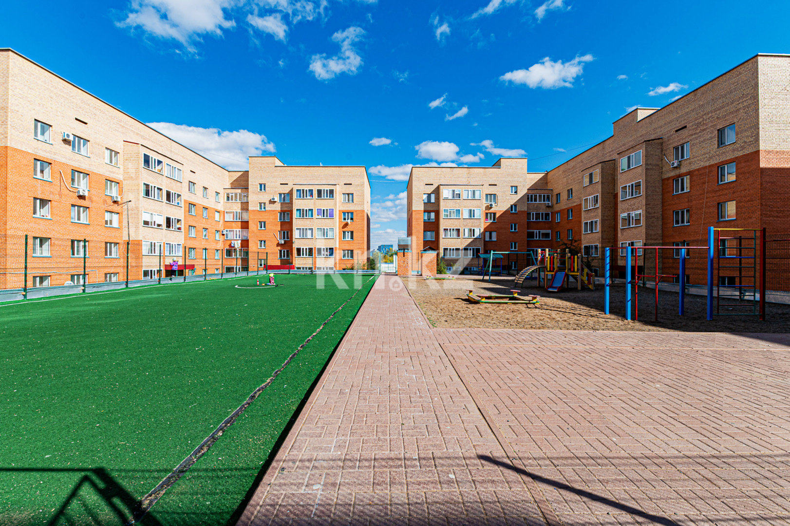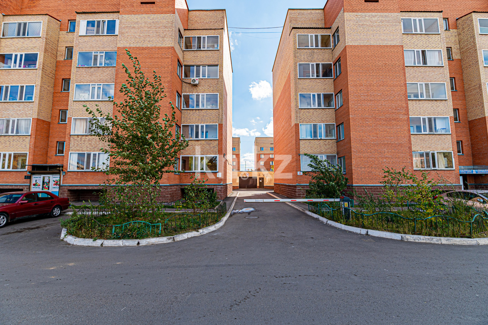 Посередине между двумя блоками жилого комплекса расположено административное здание, которое занимает супермаркет «5 минут». С обратной стороны, между домами оборудована прогулочная зона и детская площадка.