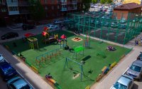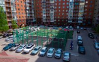 Территория ограждена и круглосуточно охраняема. Двор озеленен и благоустроен зелеными насаждениями, площадками для детских и спортивных игр, местами отдыха и прогулочными аллеями. Вблизи расположены школа и детский садик, магазины и супермаркеты, кафе и рестораны, офисы и банки.