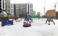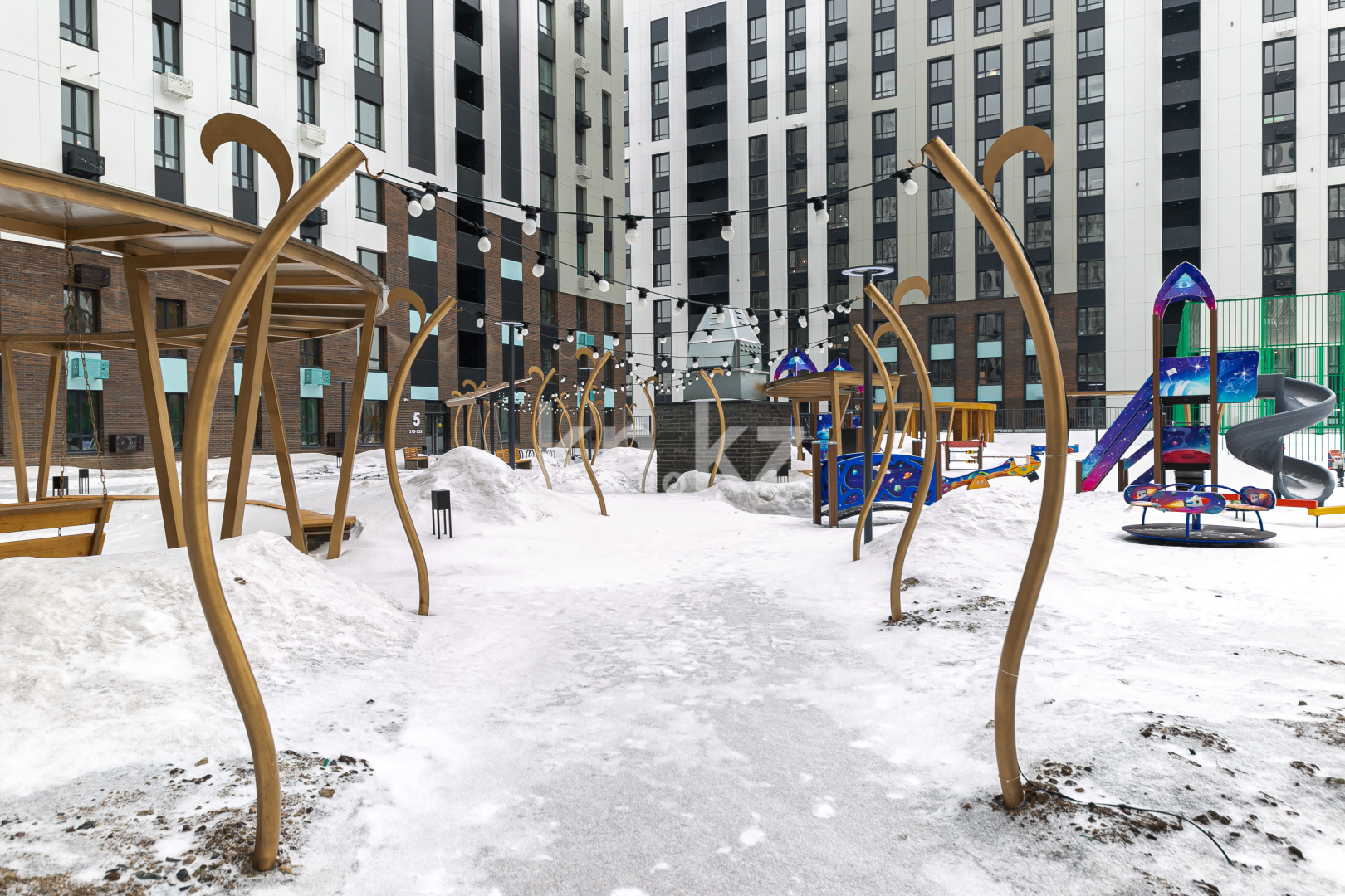 Внутренняя территория комплекса организована в соответствии с принципами концепции «двор без машин». Для безопасности жильцов установлены камеры видеонаблюдения, работает круглосуточная охранная служба.