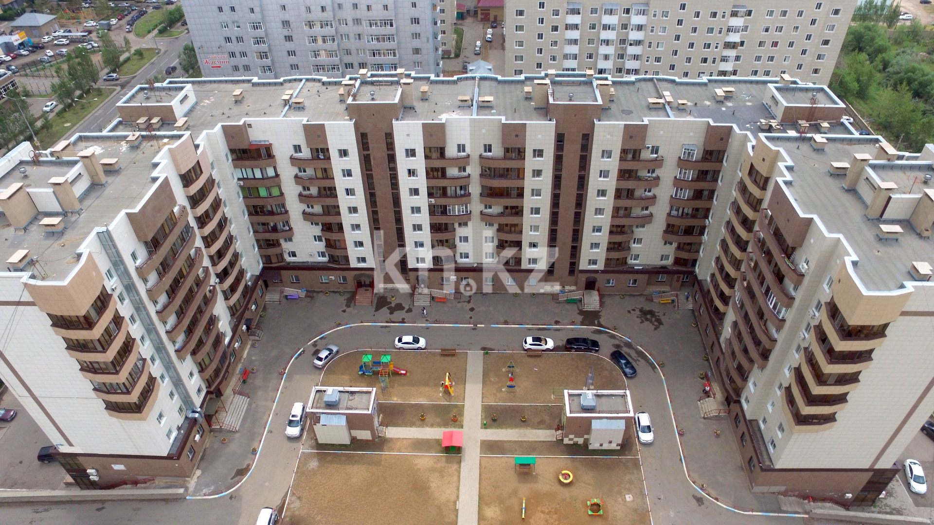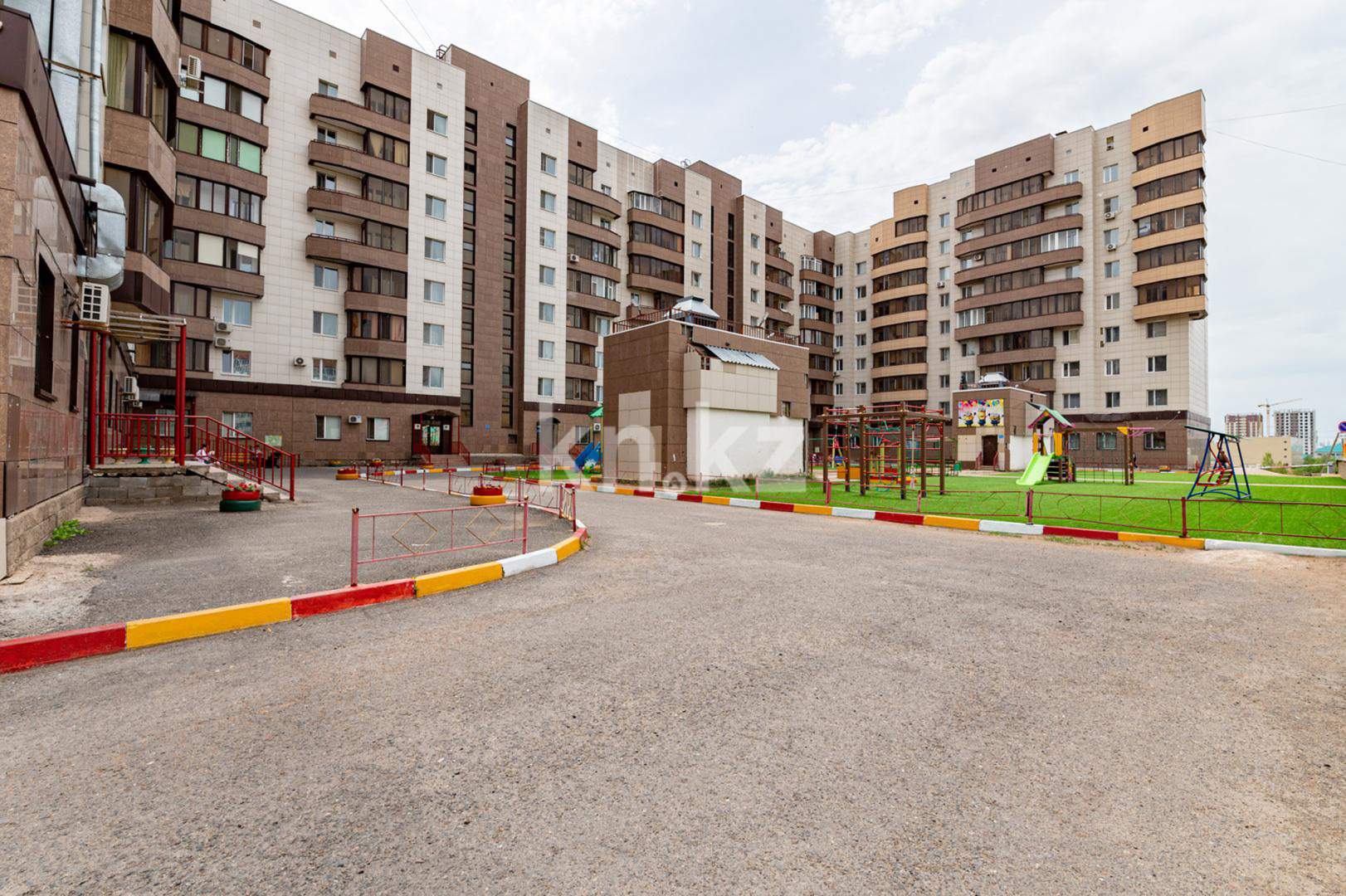Жилой комплекс "Жас Кайрат" размещается на отведенной территории в 0,887 га. Здание имеет 7-8 жилых этажей, в цокольном этаже размещена автостоянка. На первом этаже здания расположены помещения общественного назначения: коммерческие, детский сад.