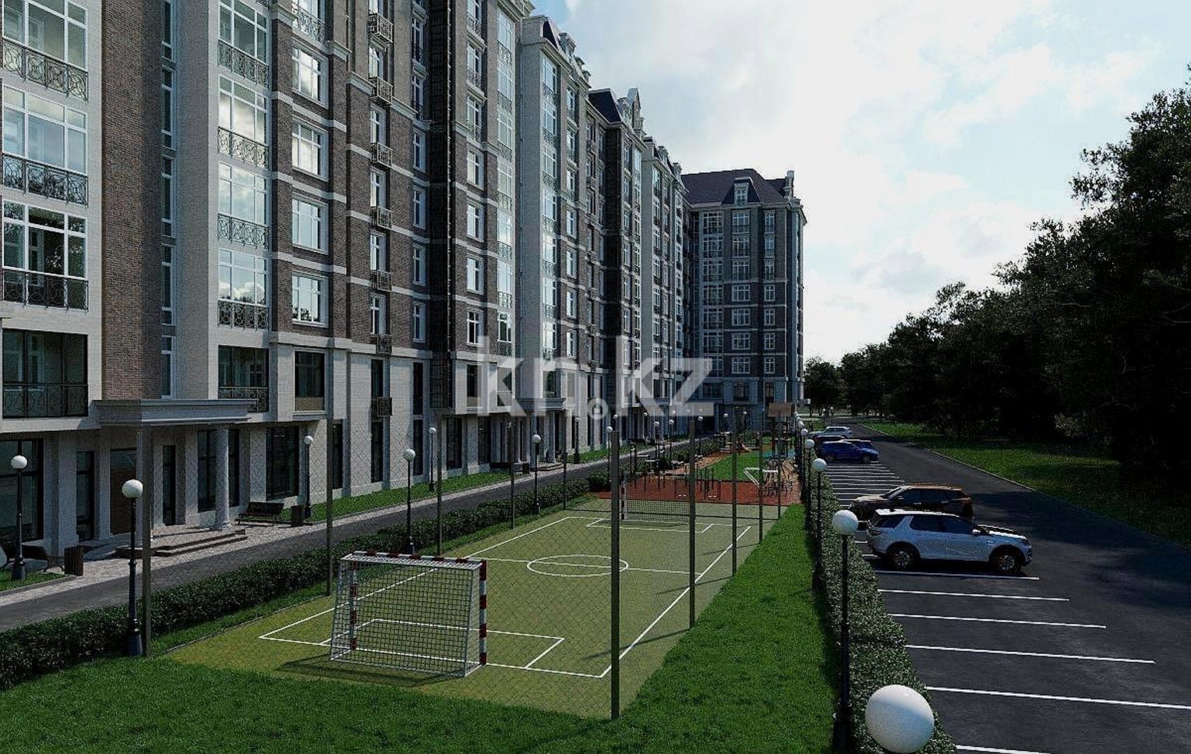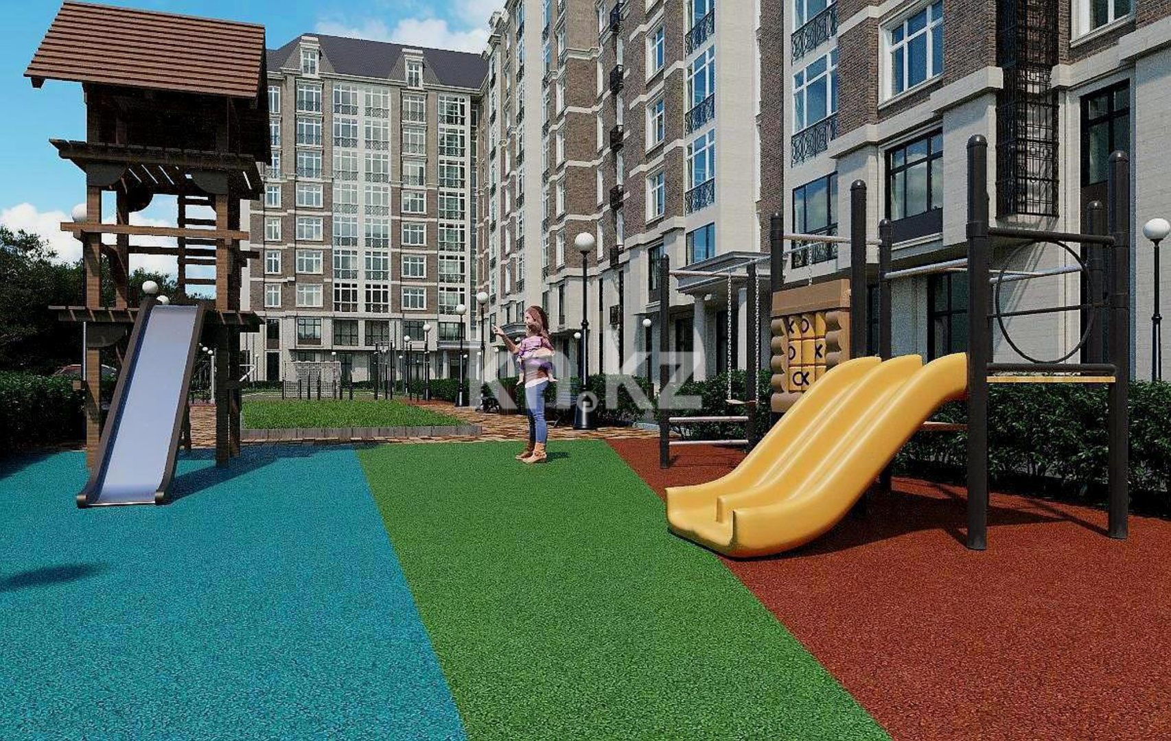 Территория комплекса закрыта и охраняется, оборудована системой видеонаблюдения. Для жителей предусмотрены детская площадка, зоны отдыха и озеленение. Двор свободен от машин, предусмотрен надземный паркинг. Холлы и места общего пользования оформлены по авторскому дизайн-проекту. В шаговой доступности — семейный парк «Керемет», кинотеатр, спортивный комплекс и другие объекты для активного отдыха.