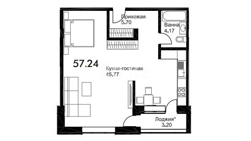 42,4 – 57,24 м²