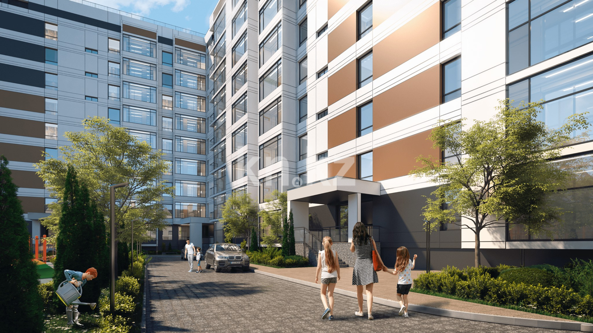 Безопасный двор, без автомобилей. Территория полностью охраняется и находится под видеонаблюдением. Во двор разрешается заезд и парковка только для автомобилей служб безопасности и здравоохранения.
