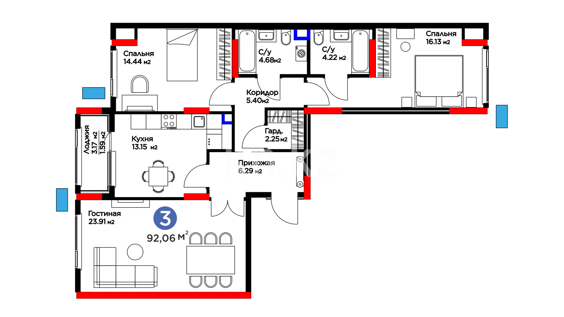 Благоустройство: детская площадка, тренажеры, охрана, видеонаблюдение.