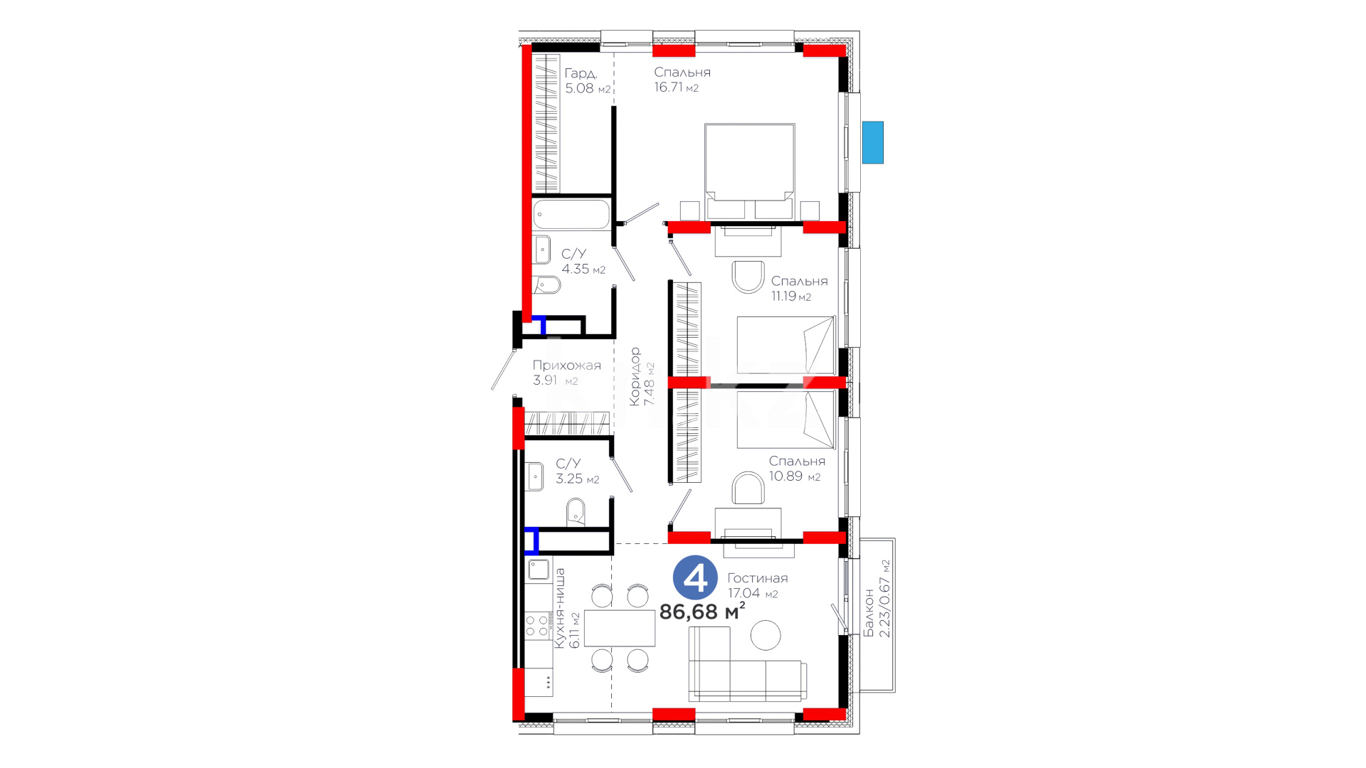 - Открытые балконы создают дополнительную зону для отдыха и обзора