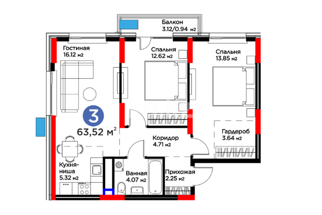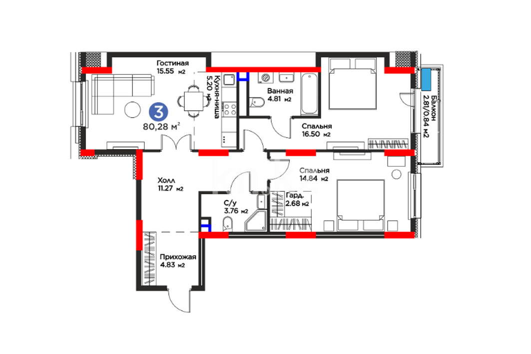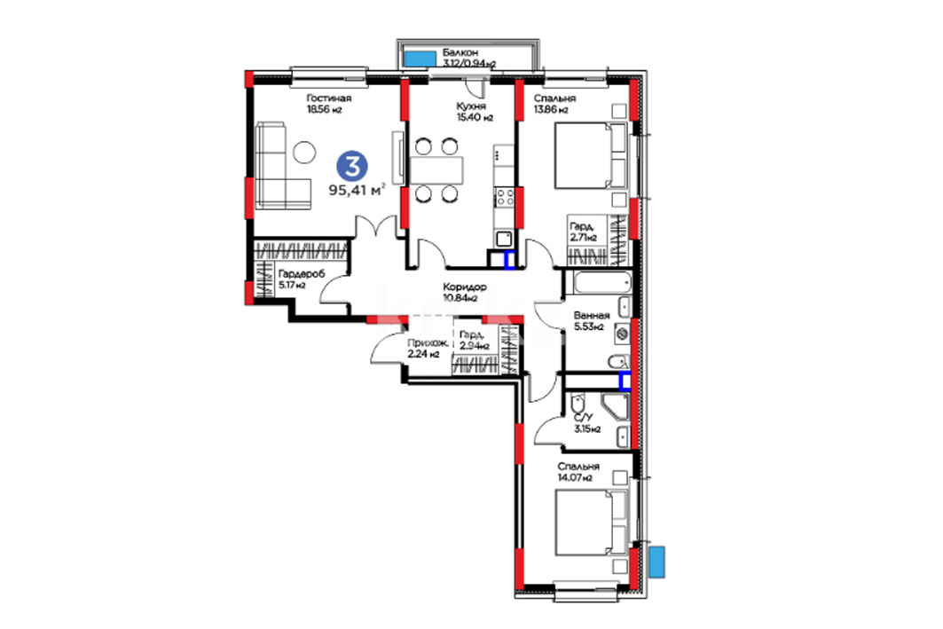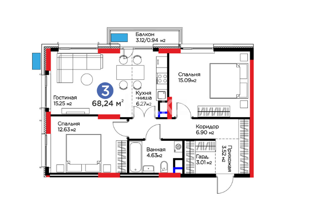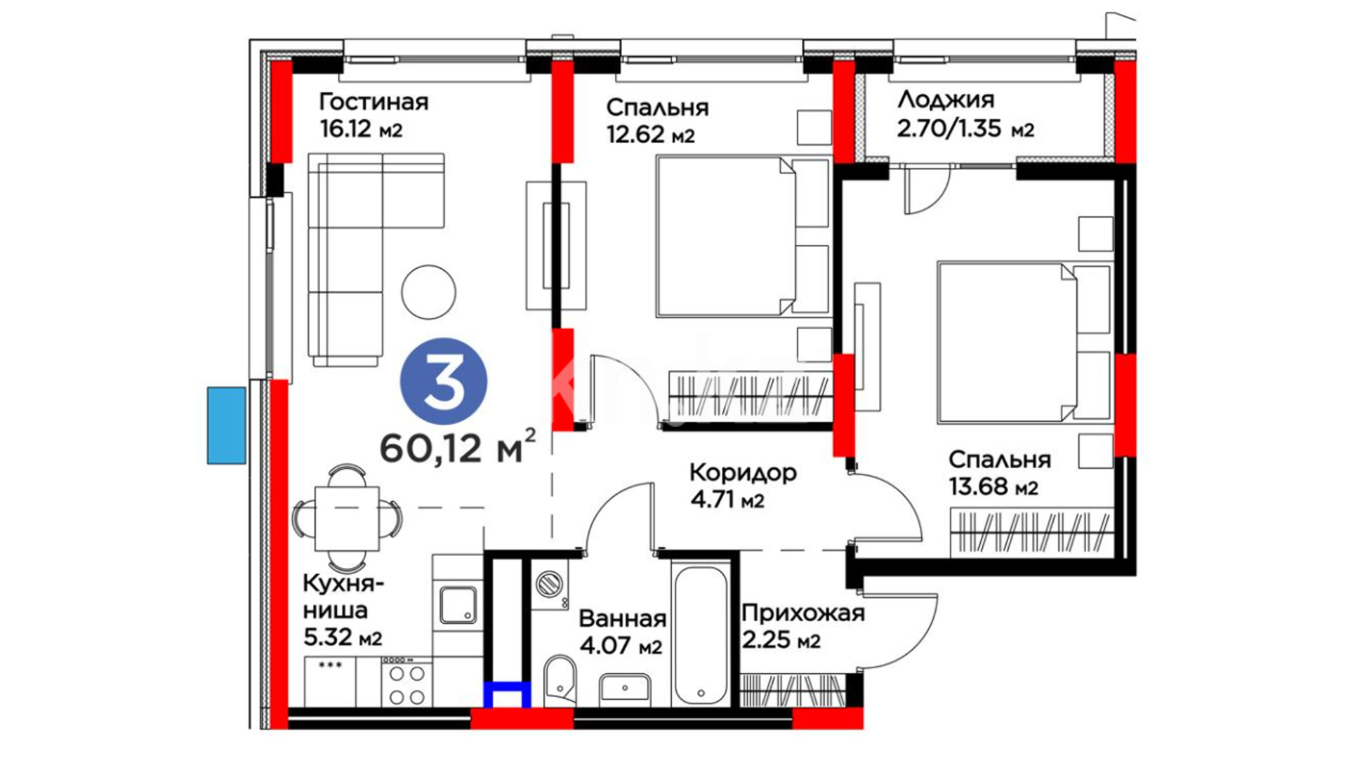 Высота потолков: 2,7–3 м