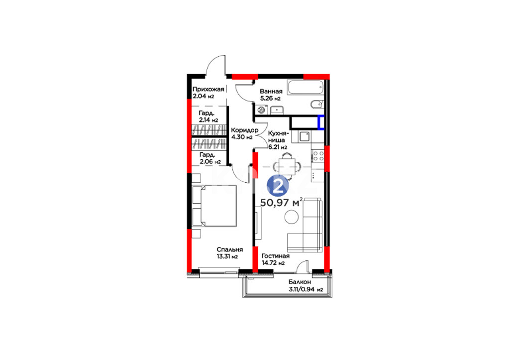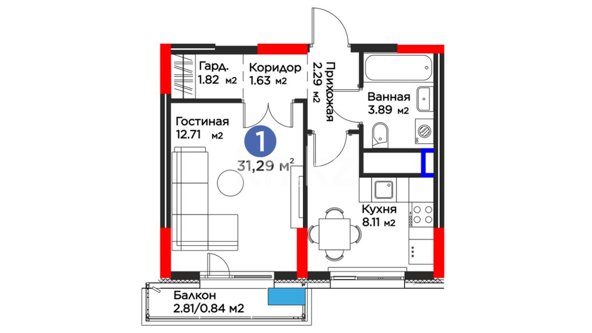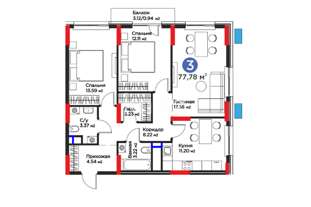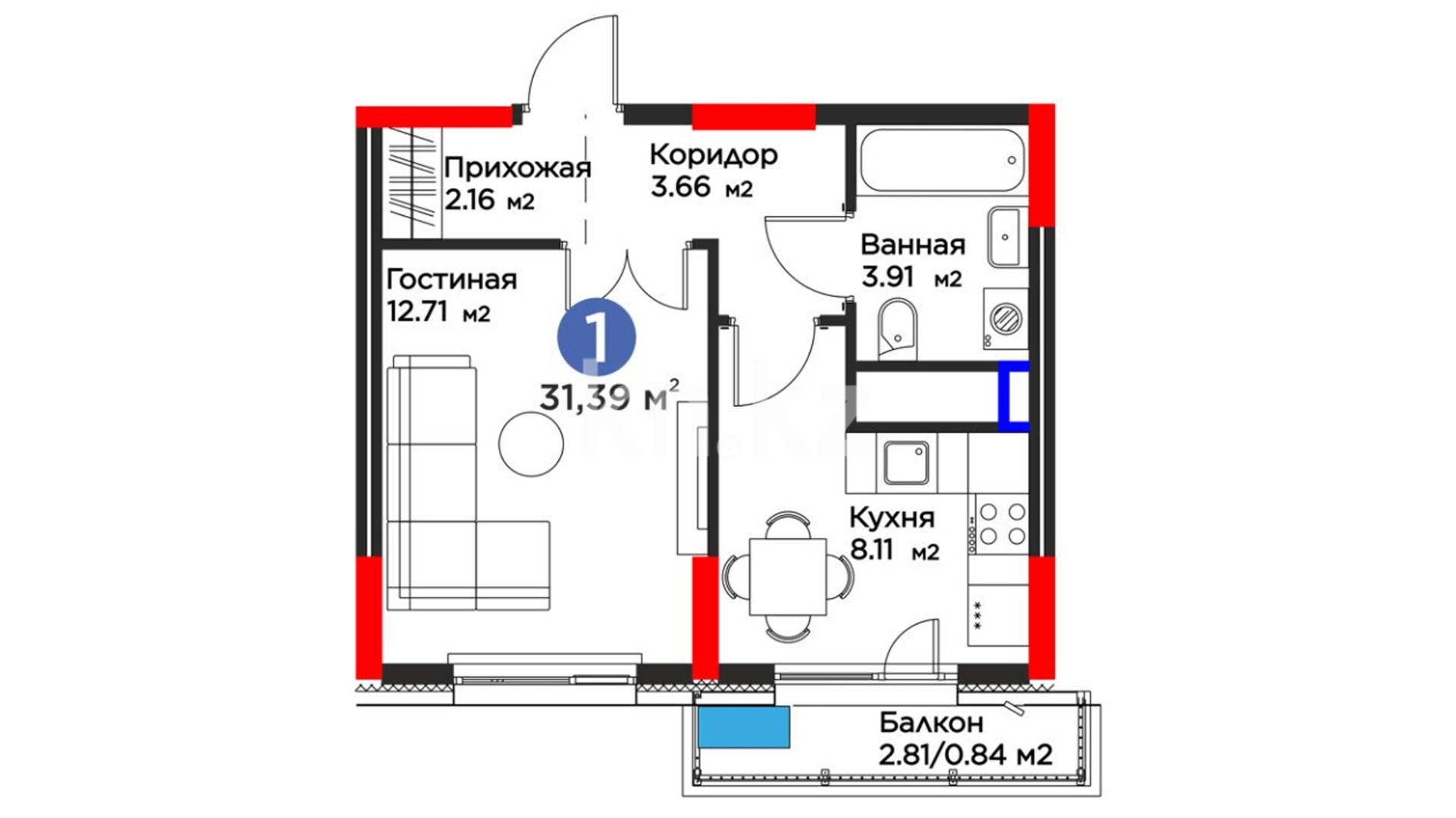 Высота потолков: 2,7–3 м