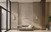 Светлые оттенки фасадов подчёркивают чистоту линий и создают ощущение простора. Большие окна наполняют квартиры естественным светом и открывают панорамные виды на город и внутренние пространства комплекса, усиливая ощущение свободы и комфорта.