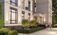 Архитектурное решение проекта воплощает гармонию современных линий фасадов и функциональных общественных пространств. Дизайн продуман до мелочей: увеличенные оконные проемы обеспечивают обилие естественного света, а высокие потолки (3,3 метра) добавляют ощущения простора. Для отделки интерьеров используются только высококачественные и дорогостоящие материалы, создавая уникальную атмосферу роскоши и изысканности.