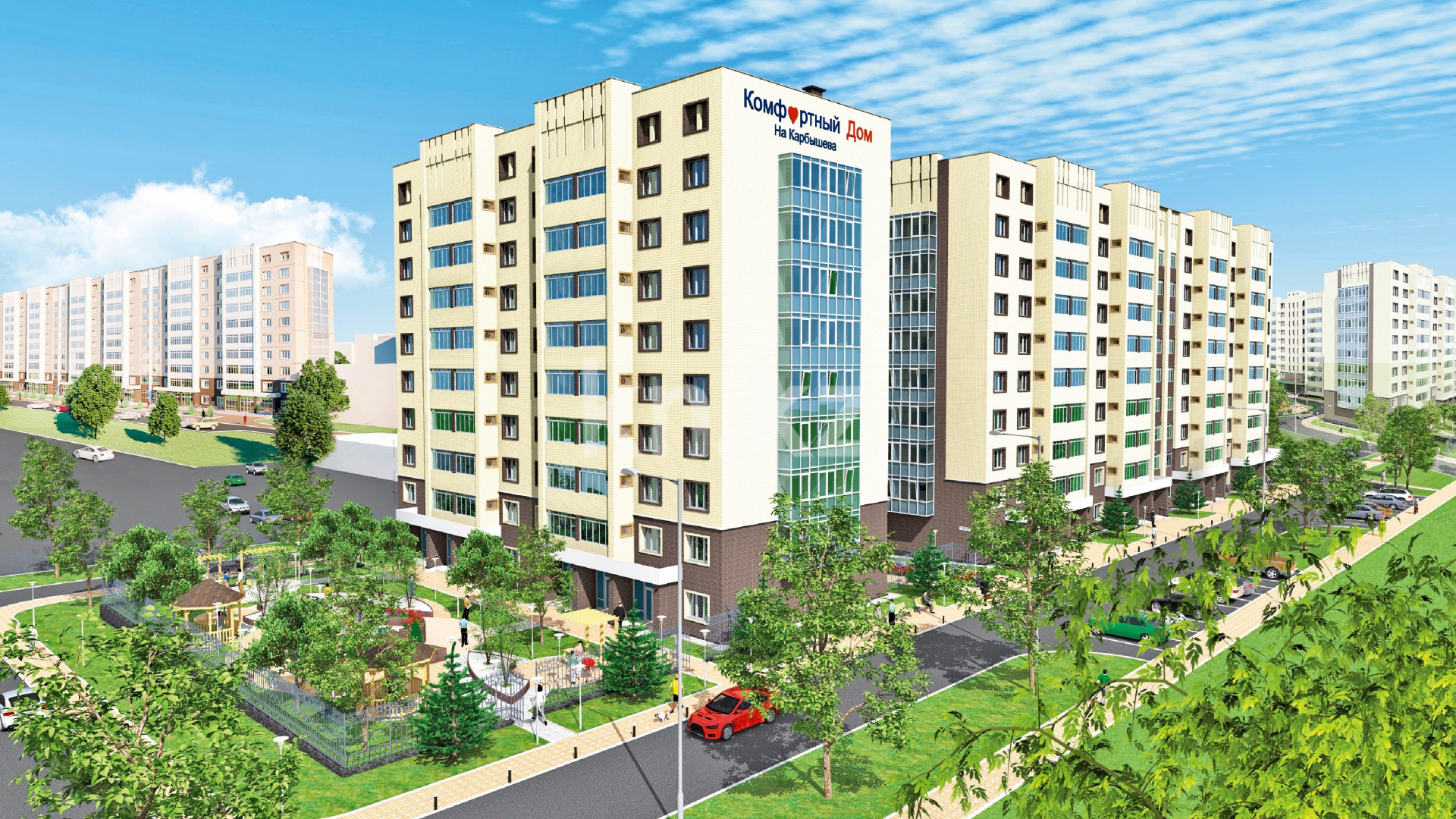 Комфортный дом на ул. Карбышева находится в районе пересечения улиц Университетская и Карбышева. В данном ЖК - от четырех до шести квартир на этаже. В доме очень теплые стены, а высота потолков составляет 2,7 метров.