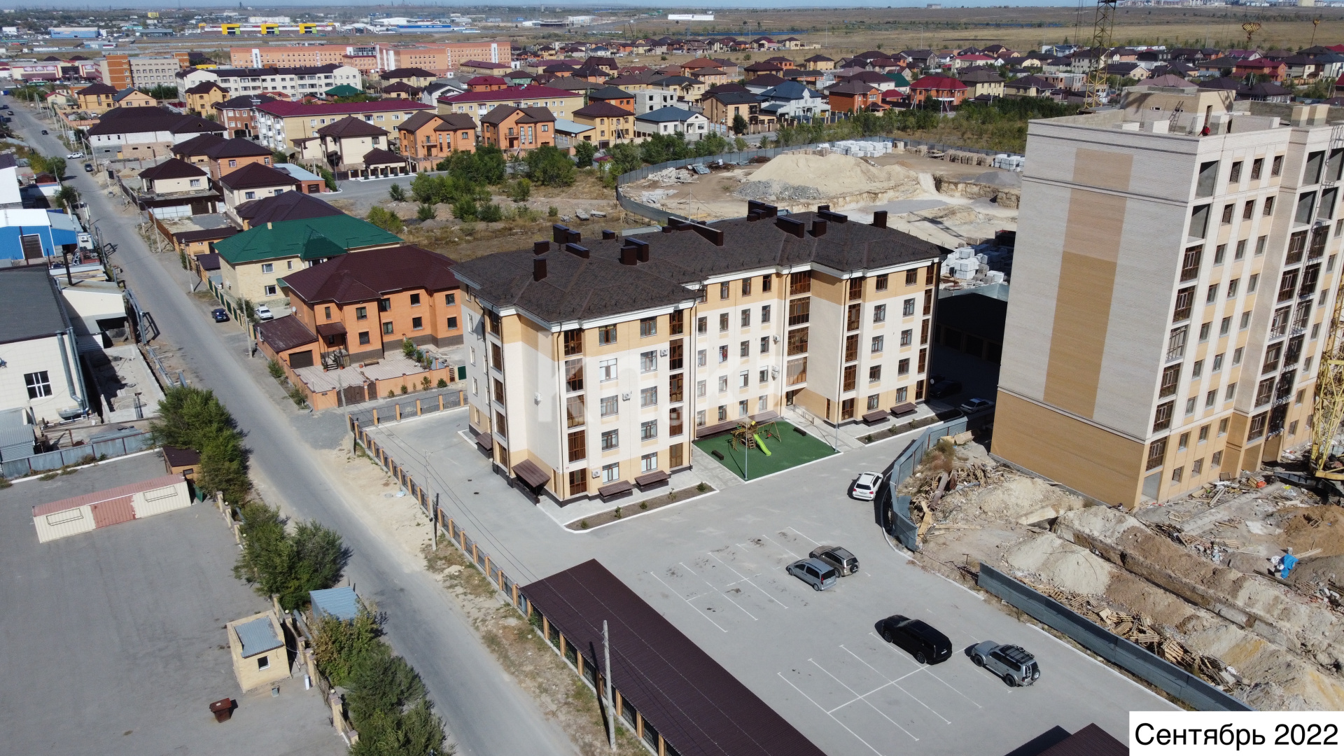 Оборудован спортивной площадкой с безопасным полиуретановым покрытием и тренажерами, огороженной детской игровой площадкой с покрытием искуственной травой. Газоны, предусмотрена посадка деревьев и кустарников.