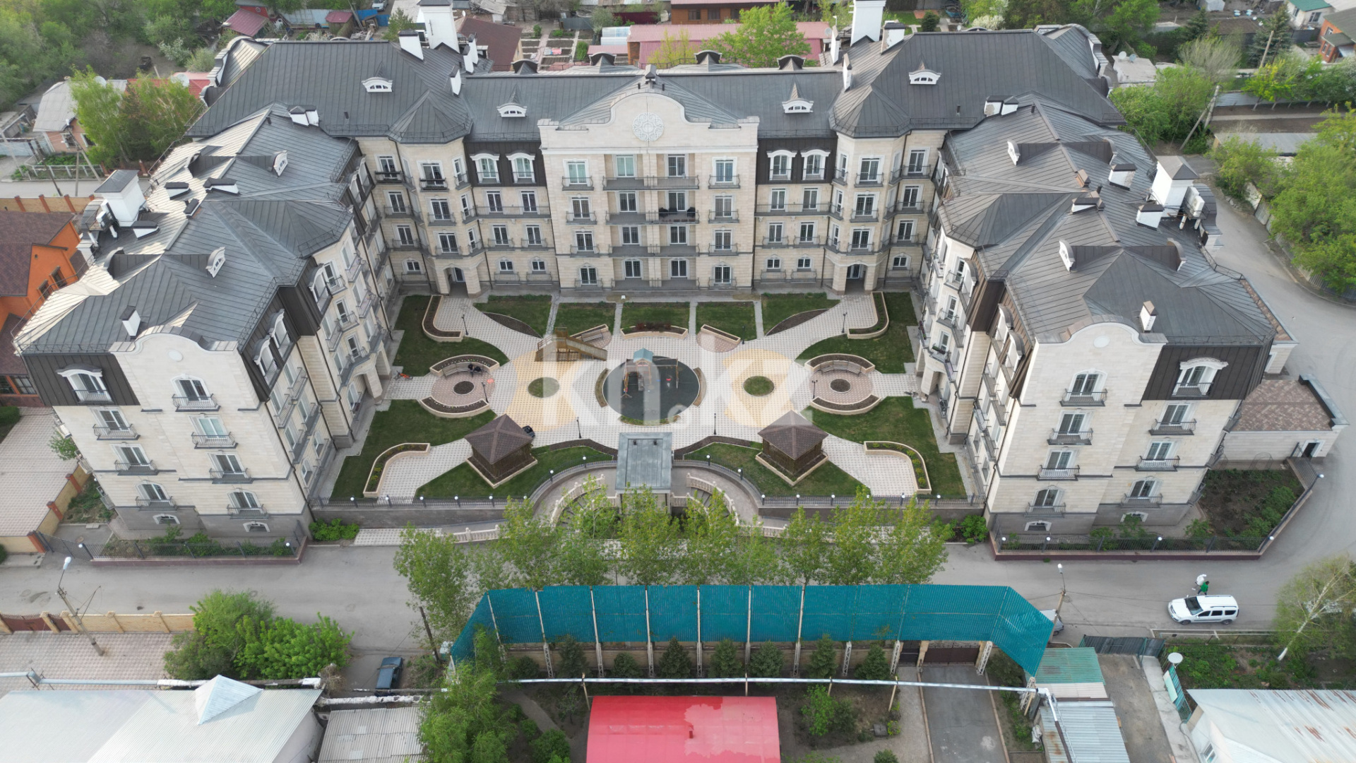 В ходе его строительства использовались современные материалы высшего качества, стены здания выполнены из керамического кирпича, фундамент и перекрытия сделаны из монолитного железобетона. Фасады облицованы травертином, витражное остекление во французском стиле. Деревянные окна изготовлены из эвкалипта и обладают прекрасными потребительскими характеристиками.