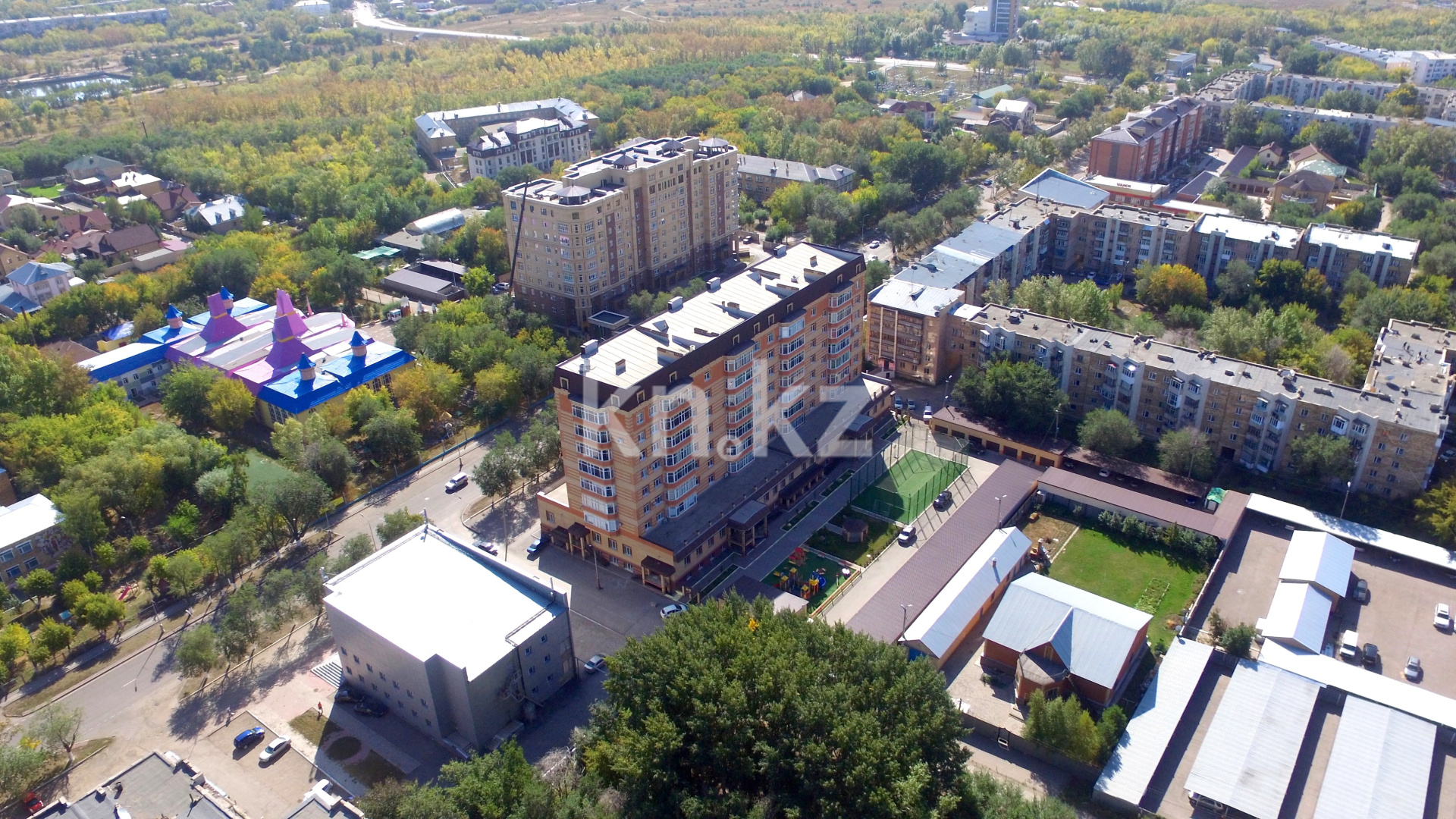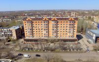 Современный 8-этажный кирпичный дом по индивидуальному проекту, с линией гаражей во дворе и нежилыми помещениями.