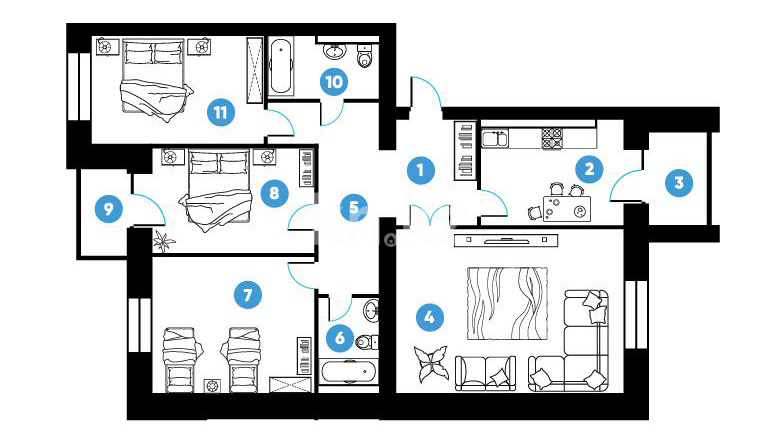 • Безопасные детские площадки для детей трёх возрастных групп.