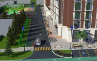 Закрытый и безопасный двор с уютным благоустройством и большой детской площадкой, спортивными площадками, досуговыми зонами с беседками. Выполняется комплексное озеленение с элементами ландшафтного дизайна.