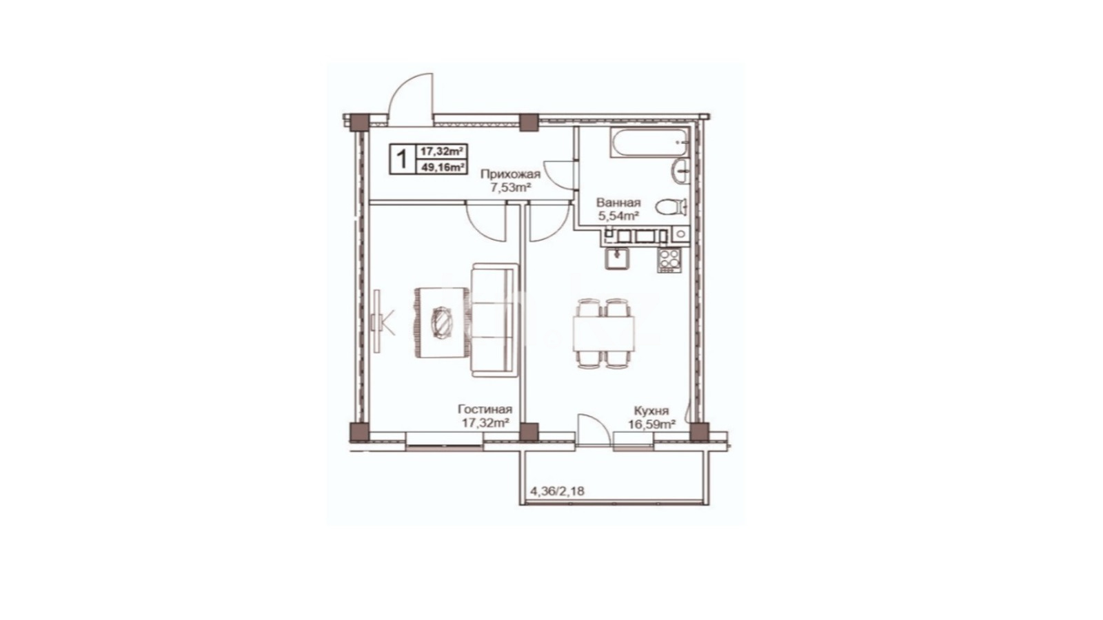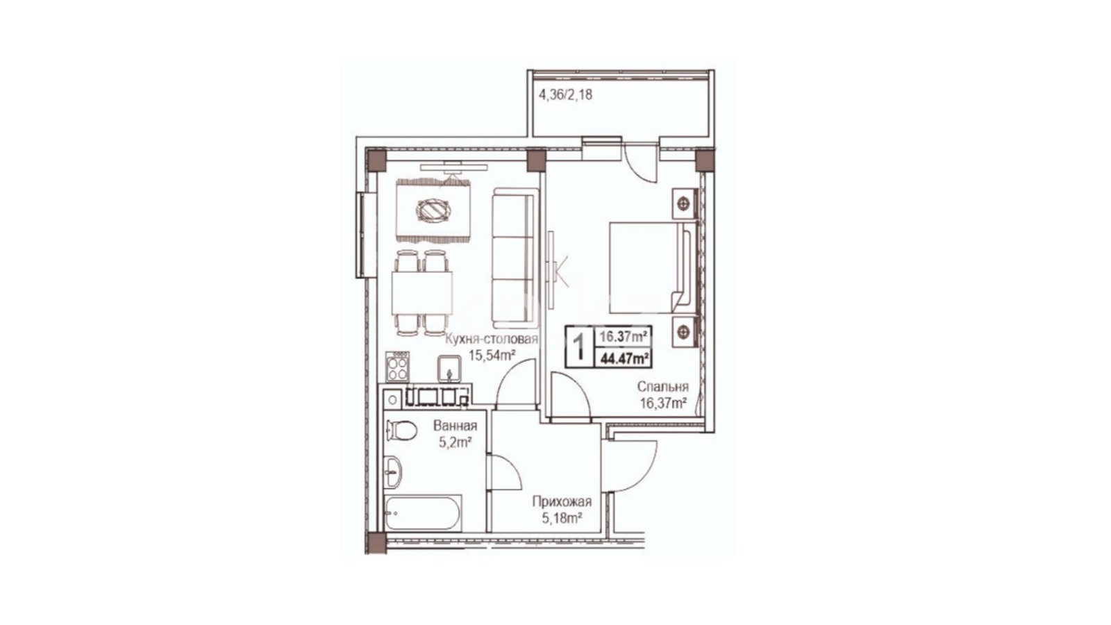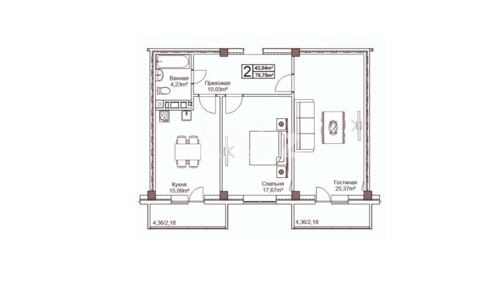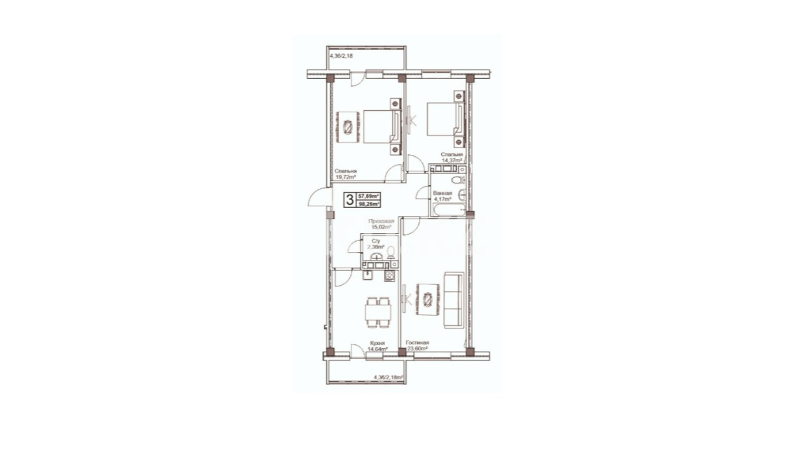 В комплексе представлены 1-, 2- и 3-комнатные квартиры площадью от 41 до 90 кв. метров. Большие окна - 1,8 м.