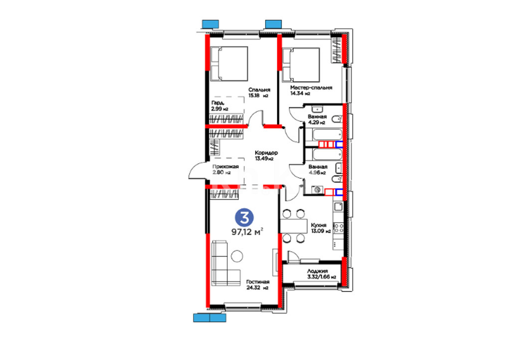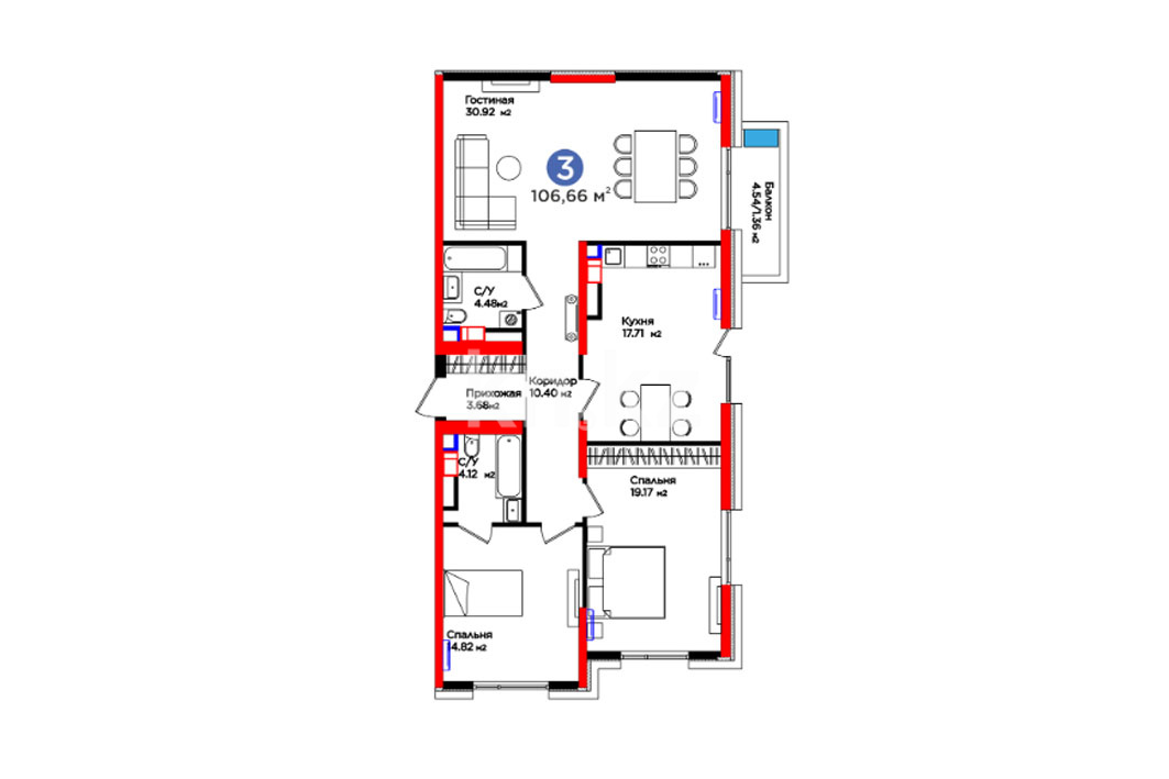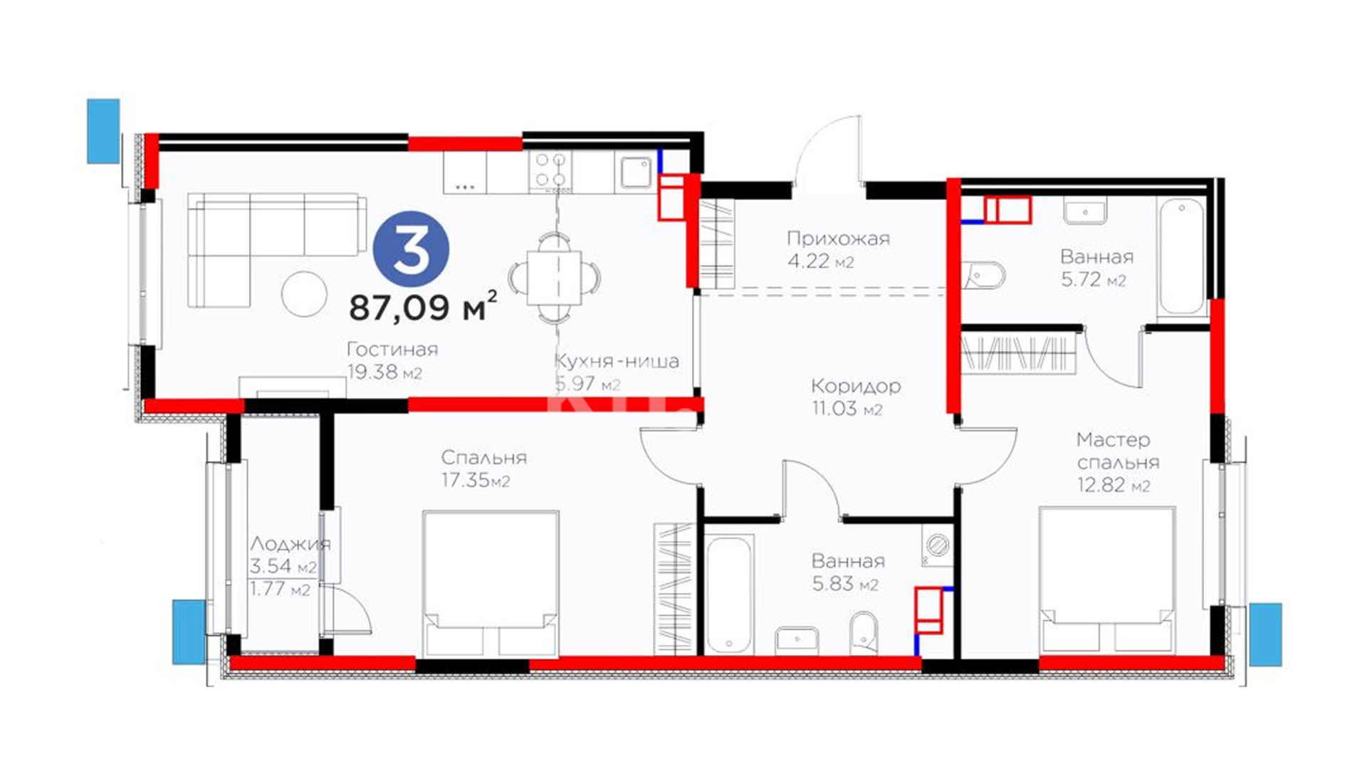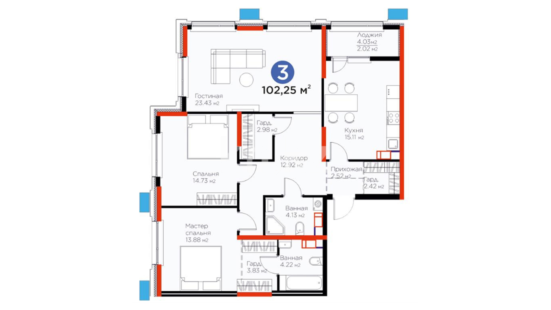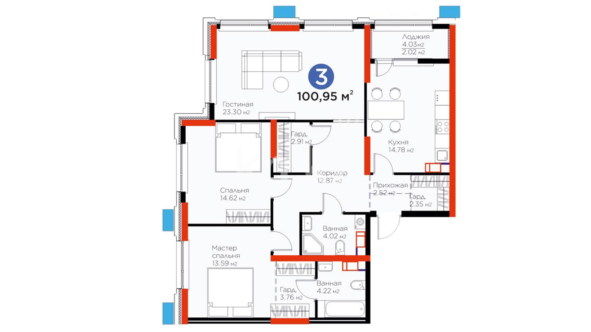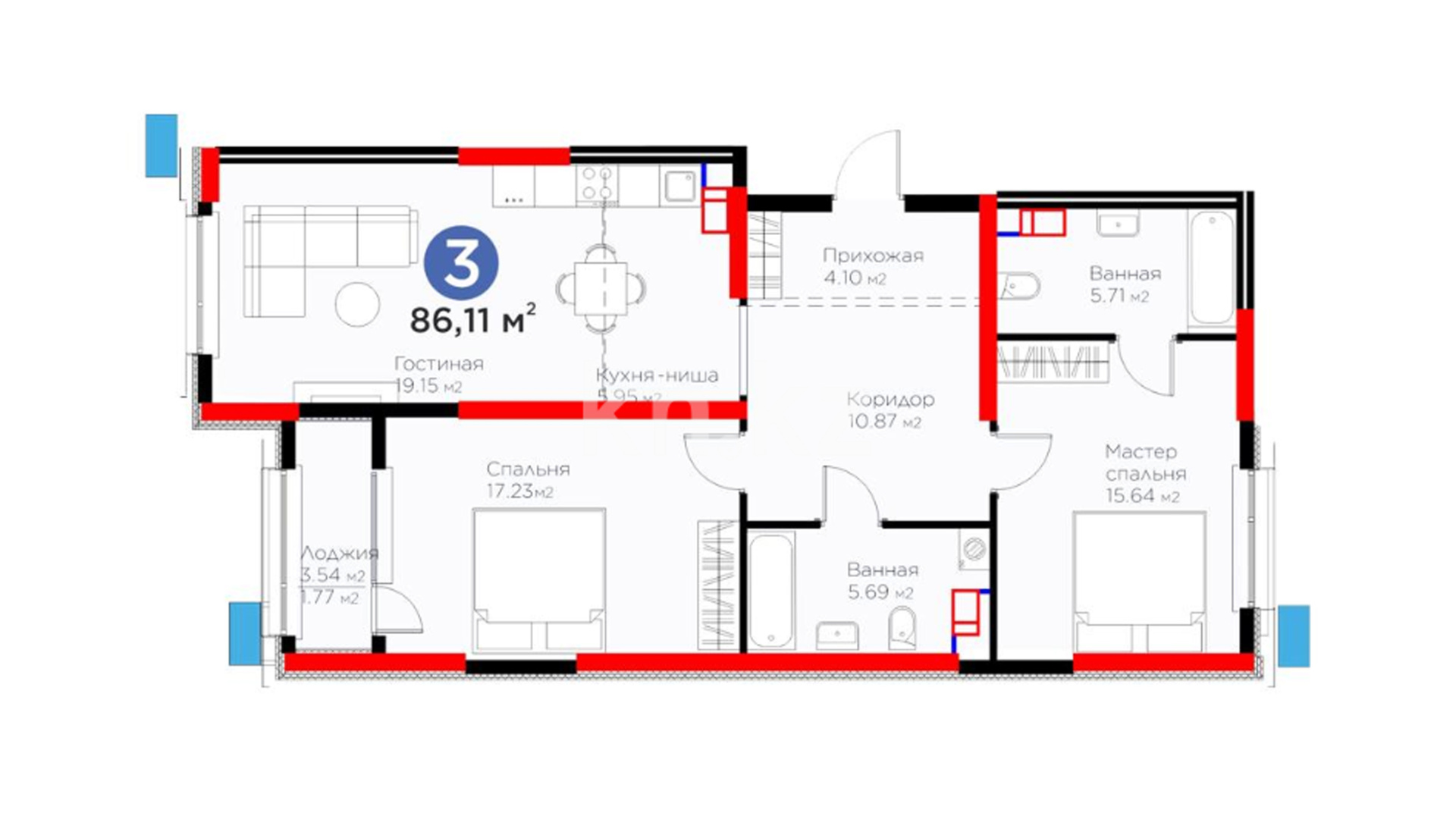 3-комнатная