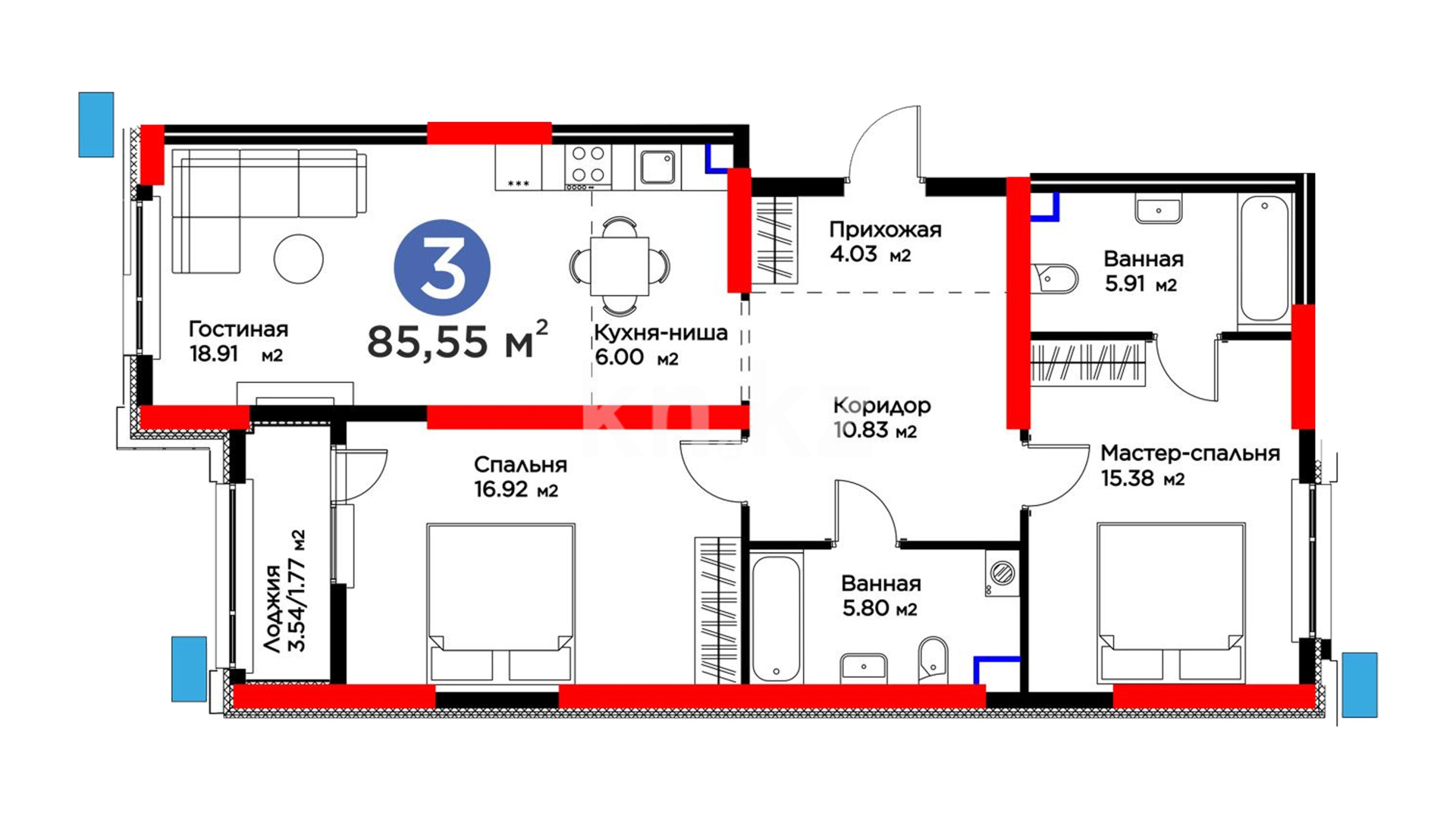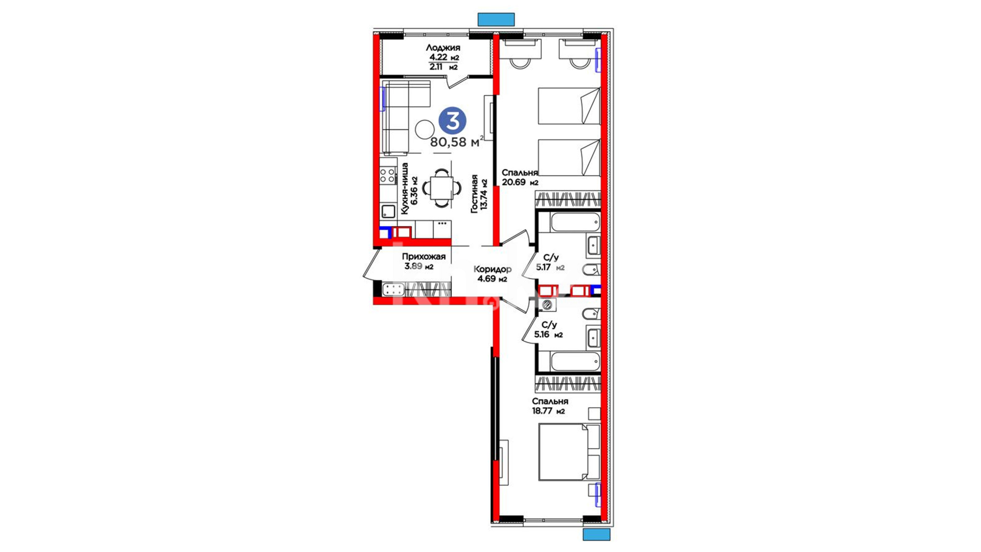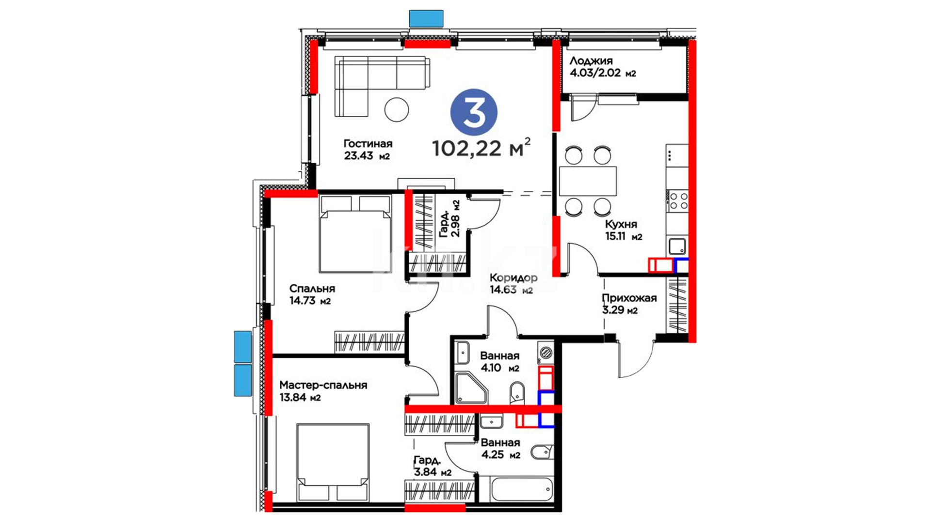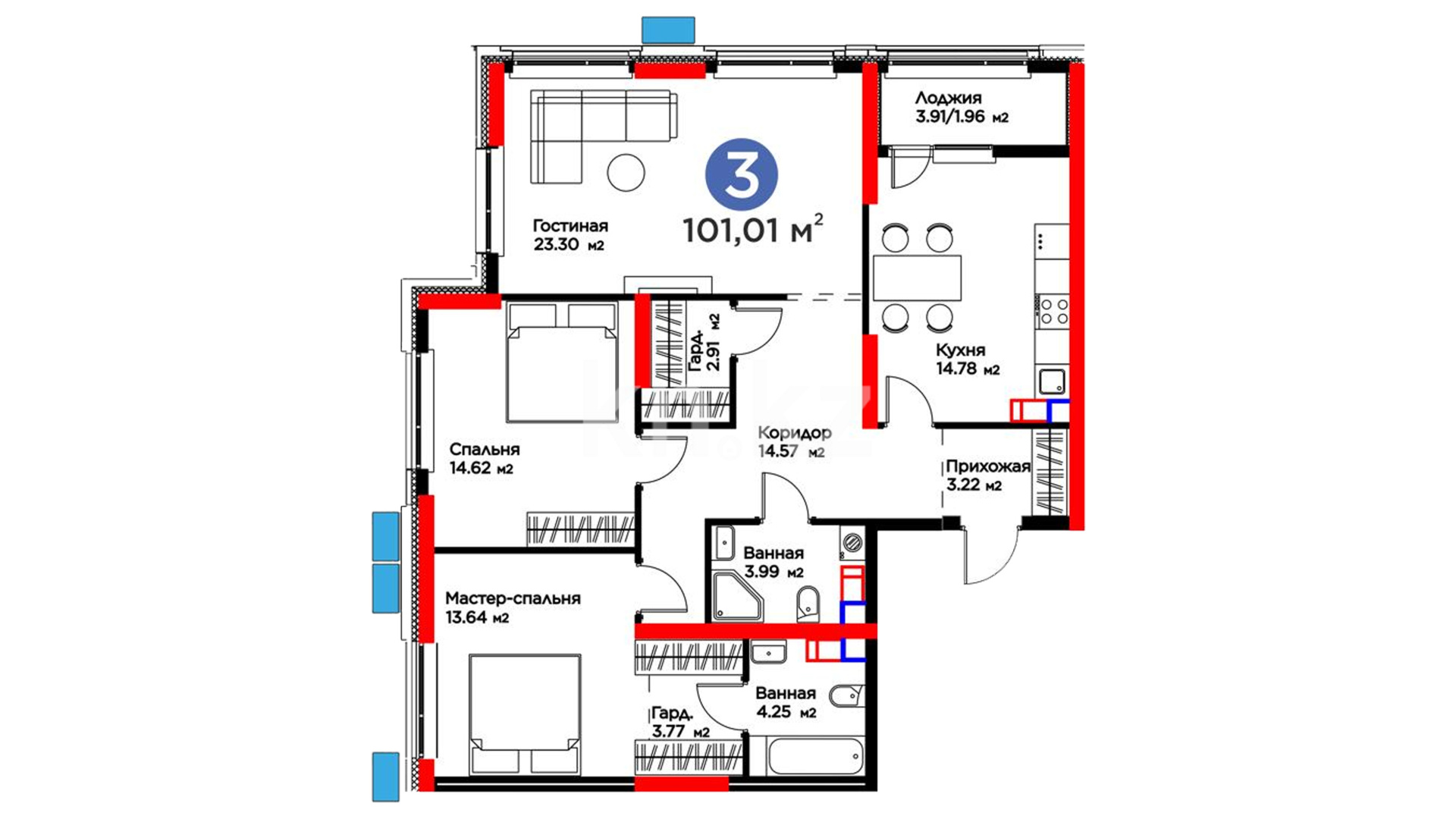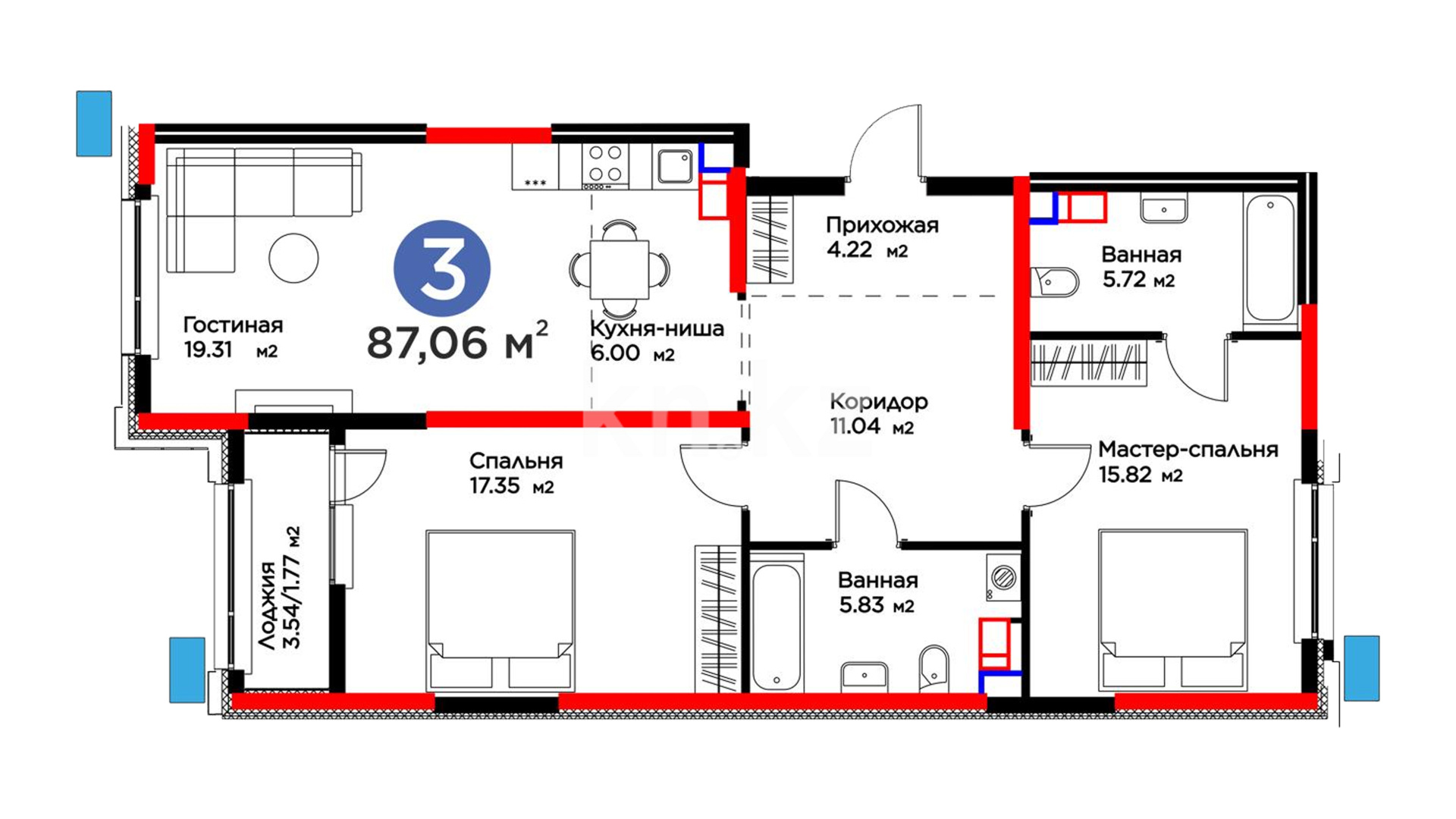 3-комнатная