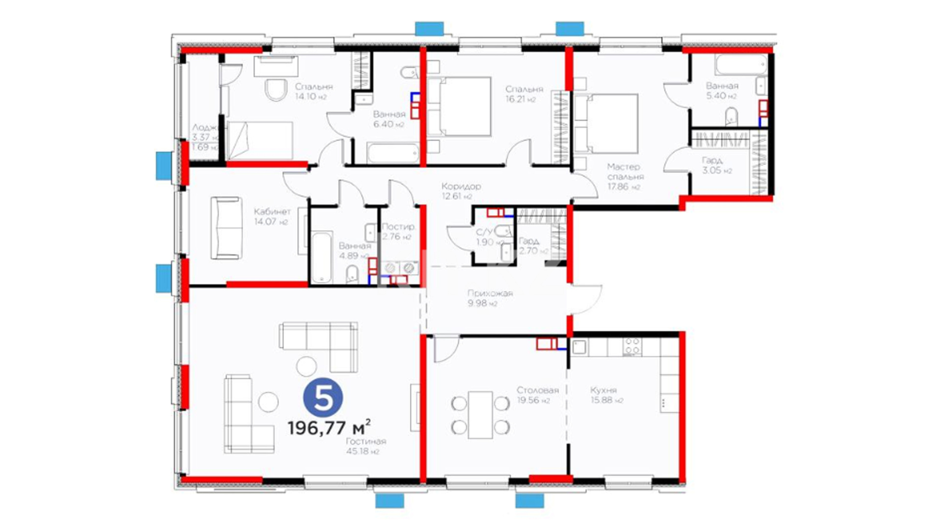 195,26 – 196,77 м²