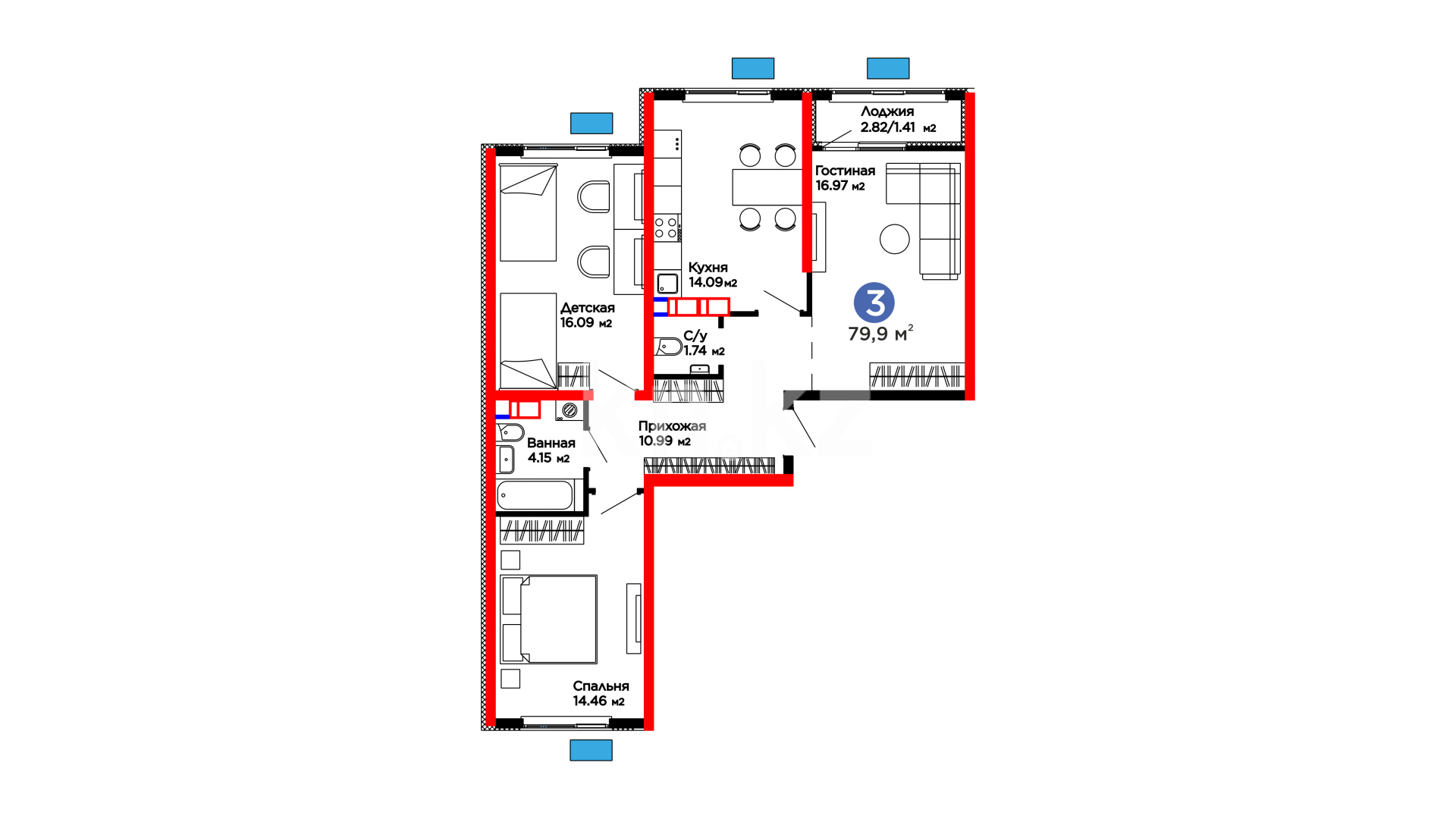 3-комнатная