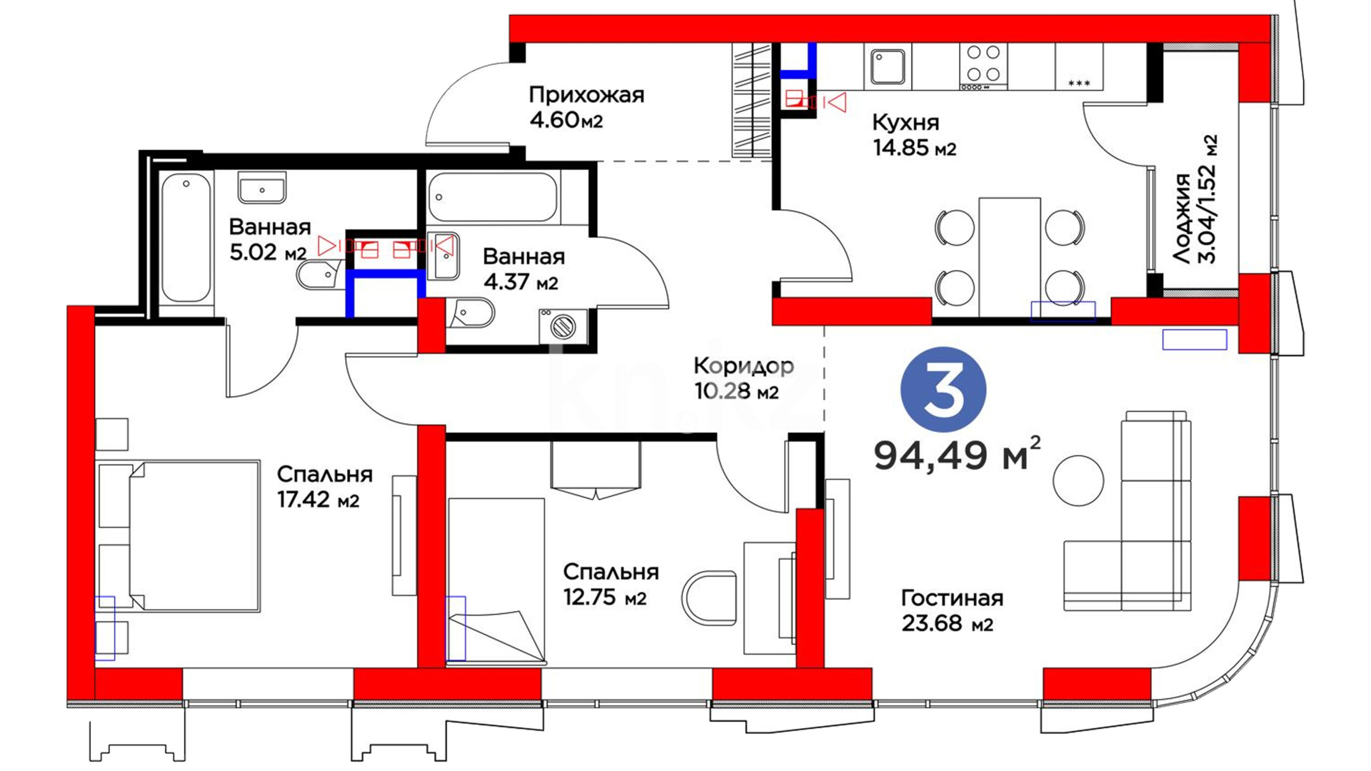 3-комнатная