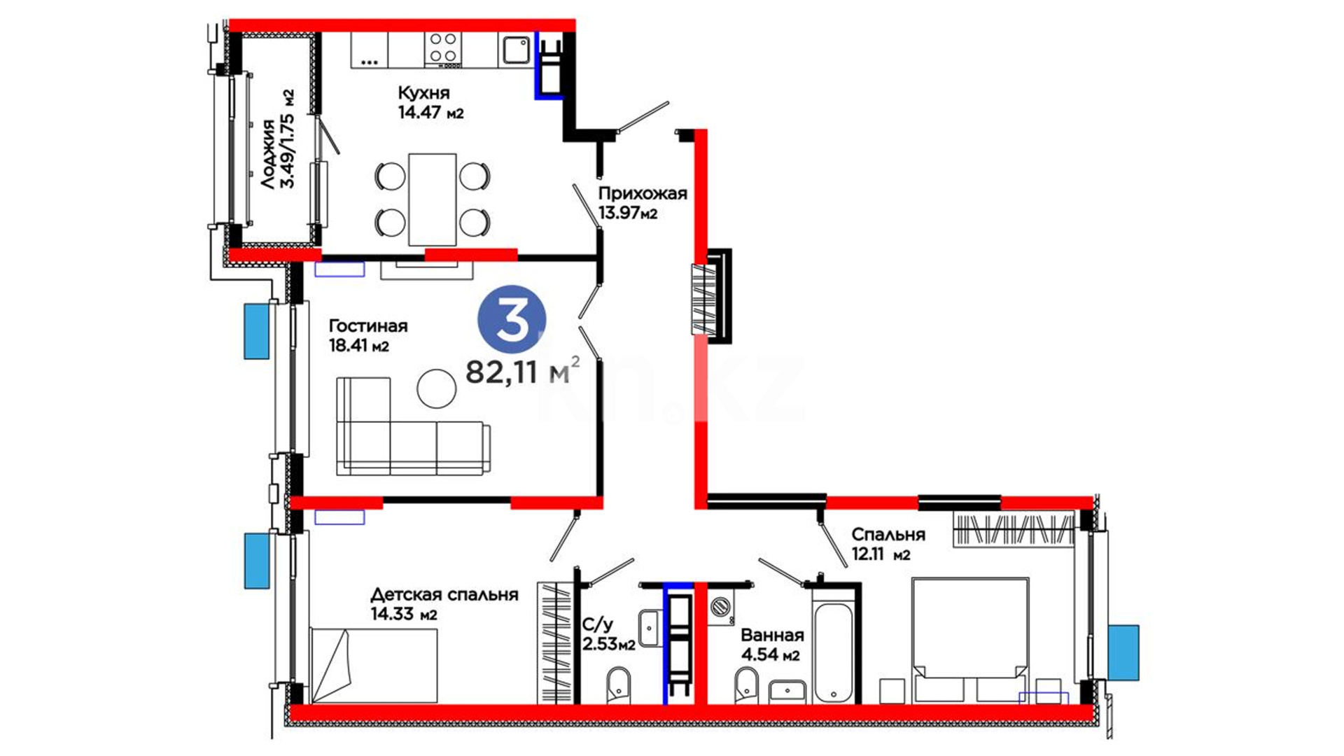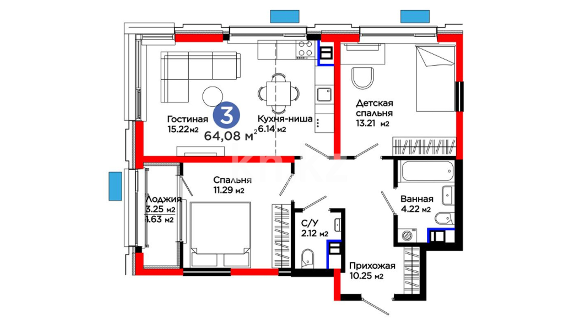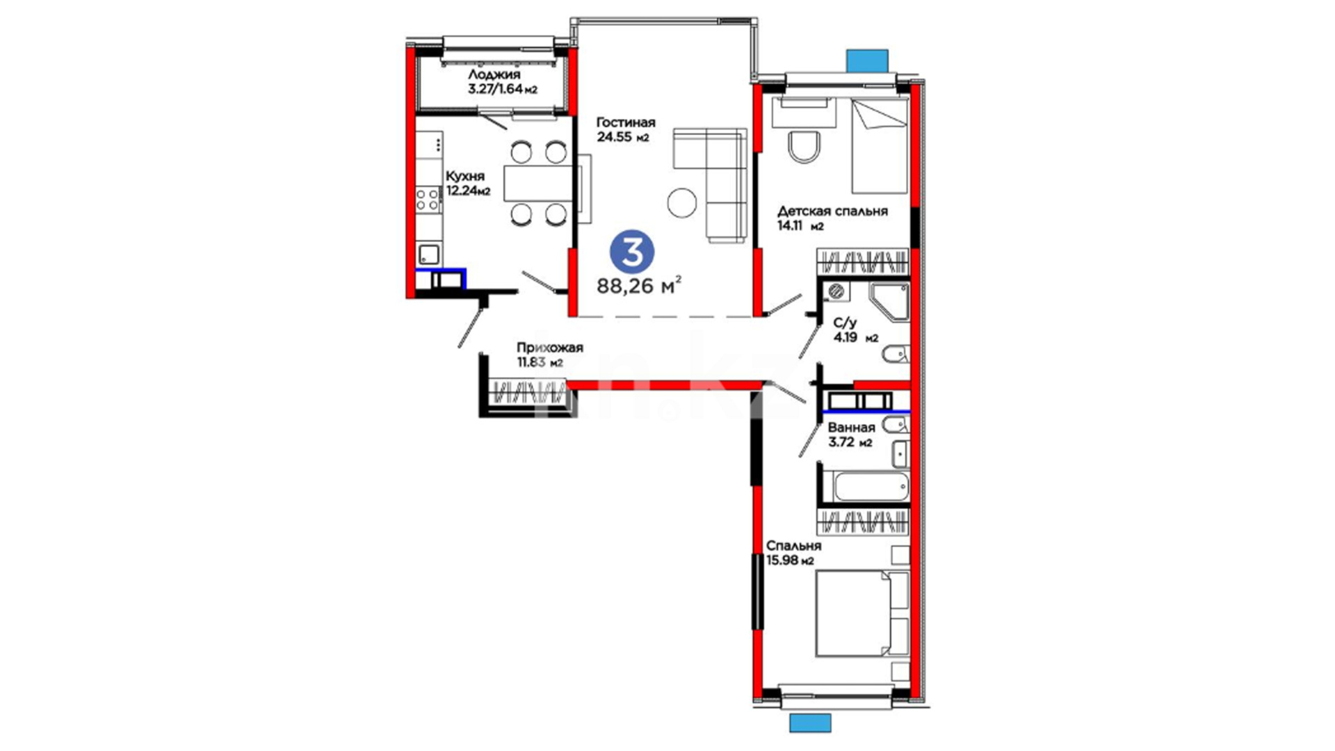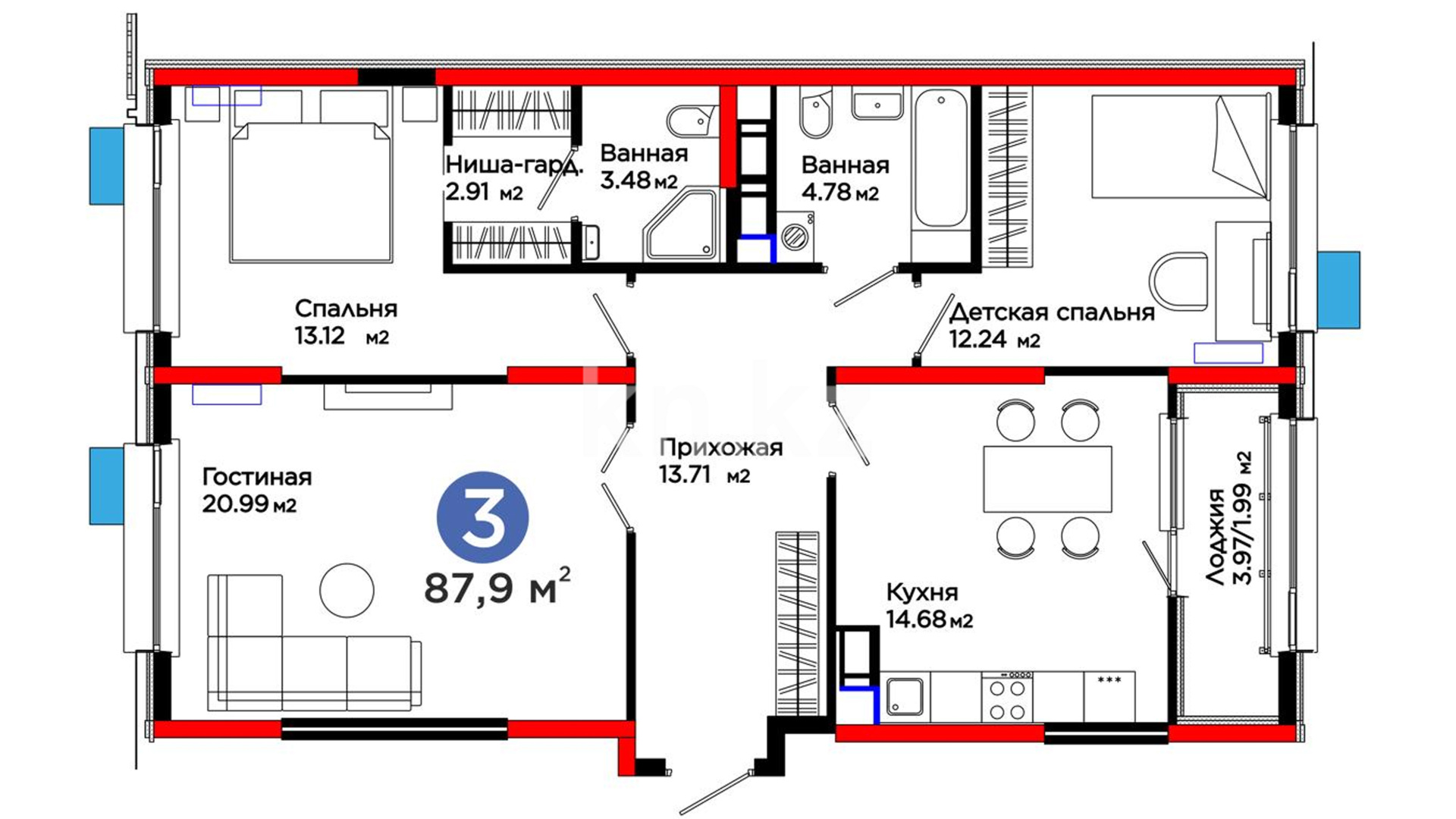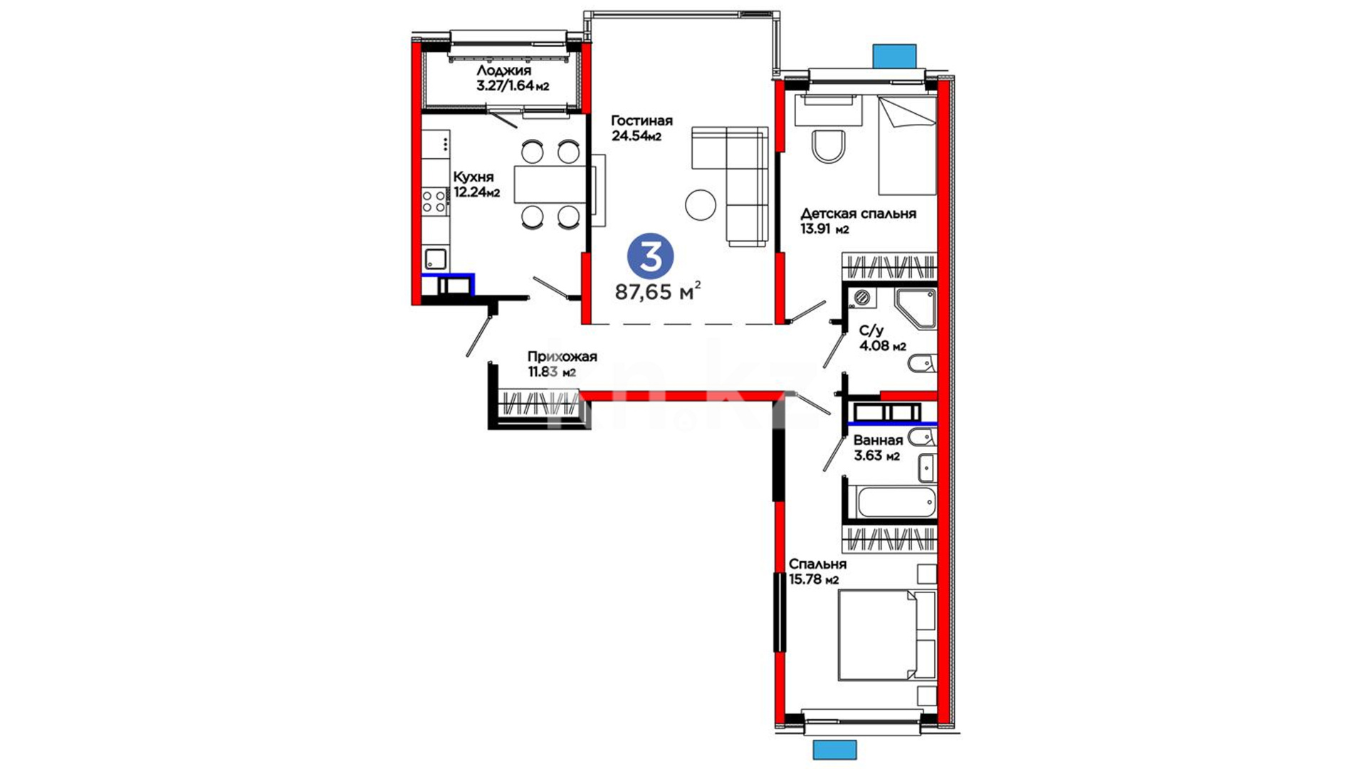 3-комнатная